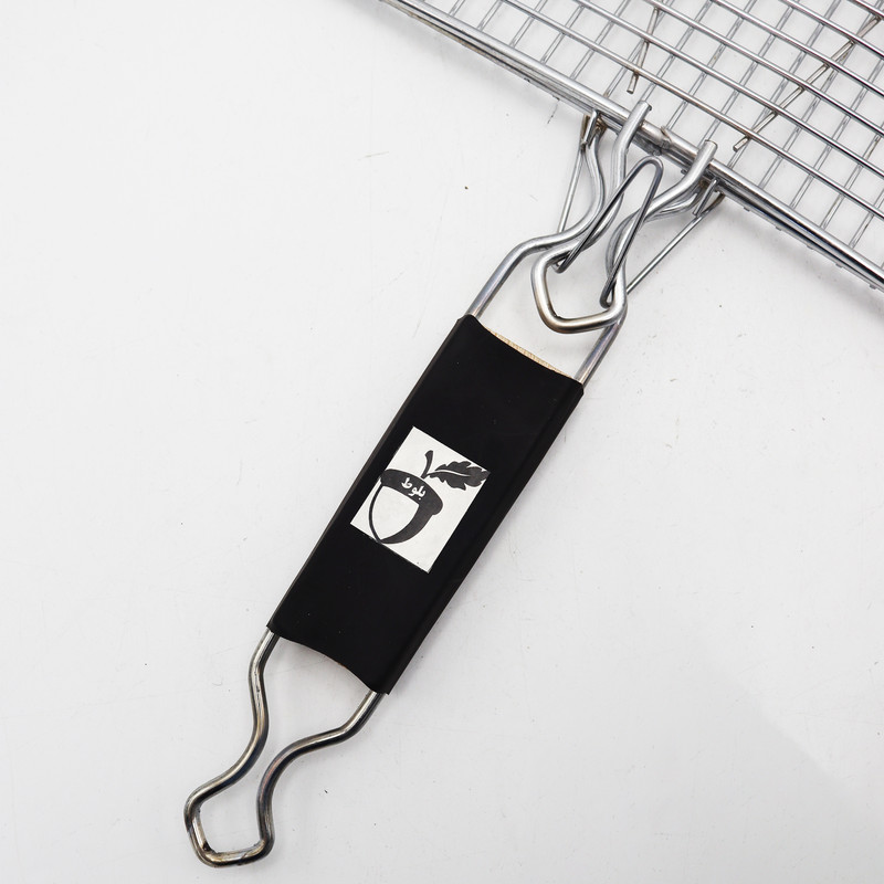 سایر توضیحات - جنس بدنه از استیل فوق العاده با کیفیت - دارای دو صفحه‌ی استیل تاشو هر یک به ابعاد 28x23 سانتی‌متر - مناسب برای کباب کردن انواع مرغ و گوشت و ماهی و ... - به شکل توری دو طرفه - دارای دسته 22 سانتی جهت حفاظت دست از حرارت - مقاوم در برابر حرارت بالا - دارای یک گیره برای متصل نگه داشتن صفحه‌های توری به یکدیگر و جلوگیری از باز شدن احتمالی - دارای دسته چوبی با روکش نسوز ضد لغزش