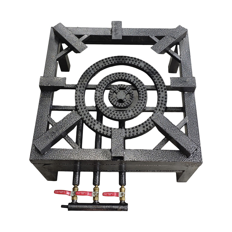 اجاق گاز صنعتی 3 شعله صنعتی جهت استفاده دیگ های بزرگ تا 90 سانتی متر .قوطی بکار رفته در بدنه از جنس پروفیل 5*5 ضخیم بوده به همراه رنگ استاتیک مقاوم دربرابر آب و رطوبت.