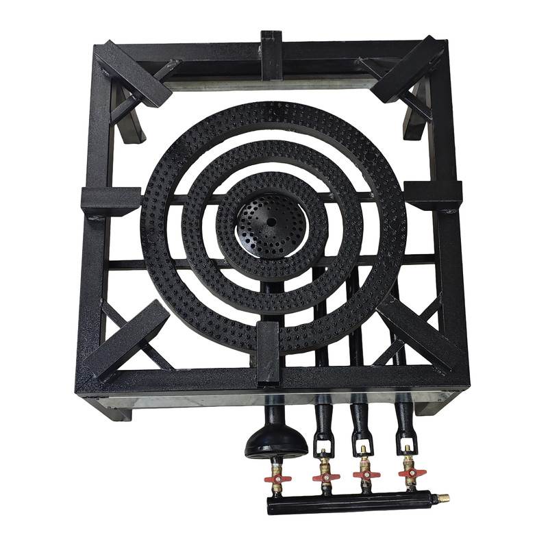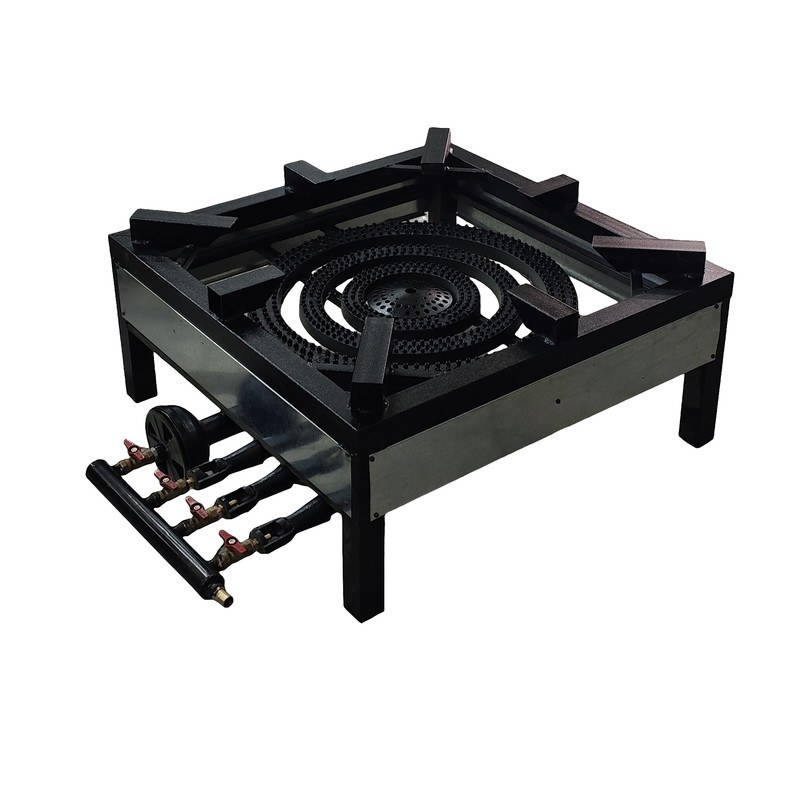 اجاق گاز صنعتی مدل A85 دارای 3 عدد شعله بزرگ و 1 عدد کوره صنعتی جهت استفاده دیگ های بزرگ صنعتی.بدنه ساخته شده از پروفیل 5*5 ضخیم و شیر های گاز از نوع استاندارد می باشد.
