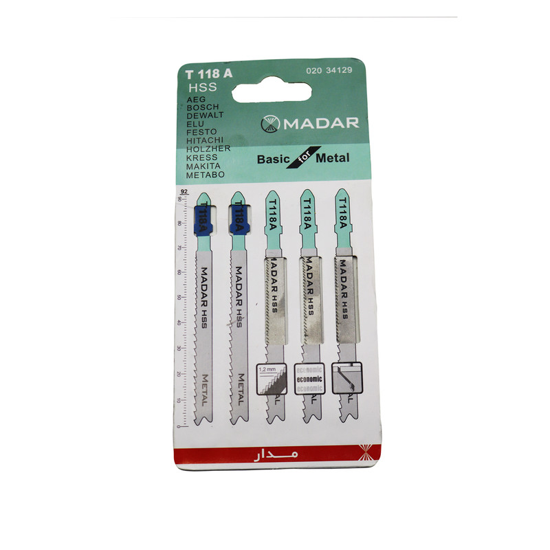 سایر توضیحات | - تیغه اره عمود بر مدار مجموعه 5 عددی - جنس : HSS ( آلیاژ فولاد تندبر ) - کیفیت بالا - طول : ۱۰ سانتی متر - با کیفیت تضمین شده جهت برش ورقه های آهنی - کیفیت بالا |