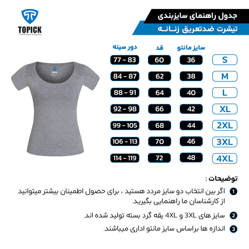 معیار سایزبندی تیشرت تاپیک، اندازه دور سینه است.
