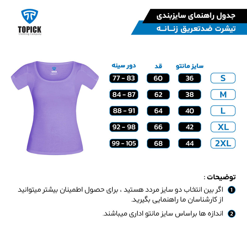 معیار سایزبندی تیشرت تاپیک، اندازه دور سینه است.