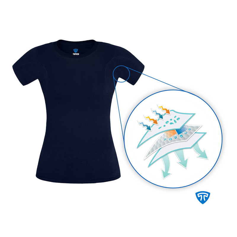 تیشرت ضدتعریق تاپیک برای افرادی مناسب است که تعریق معمولی دارند. این تیشرت با داشتن لایه محافظ در ناحیه زیربغل، مانع از بوی ناخوشایند و لکه‌های خیسی روی لباس شما می‌شود و اعتماد به نفس بیشتری به شما می‌بخشد. خاصیت ضدتعریق این محصول، علاوه بر کاهش نیاز به شستشو، باعث افزایش دوام لباس‌ها و حفظ راحتی و آرامش شما می‌شود. در فرآیند تولید این پارچه، باکتری‌های بوزا نمی‌توانند به داخل آن نفوذ کنند و از بین می‌روند. همچنین، این تیشرت از نخ پنبه 100% ساخته شده و ضدحساسیت است؛ بنابراین از بروز هرگونه حساسیت پوستی جلوگیری می‌کند
