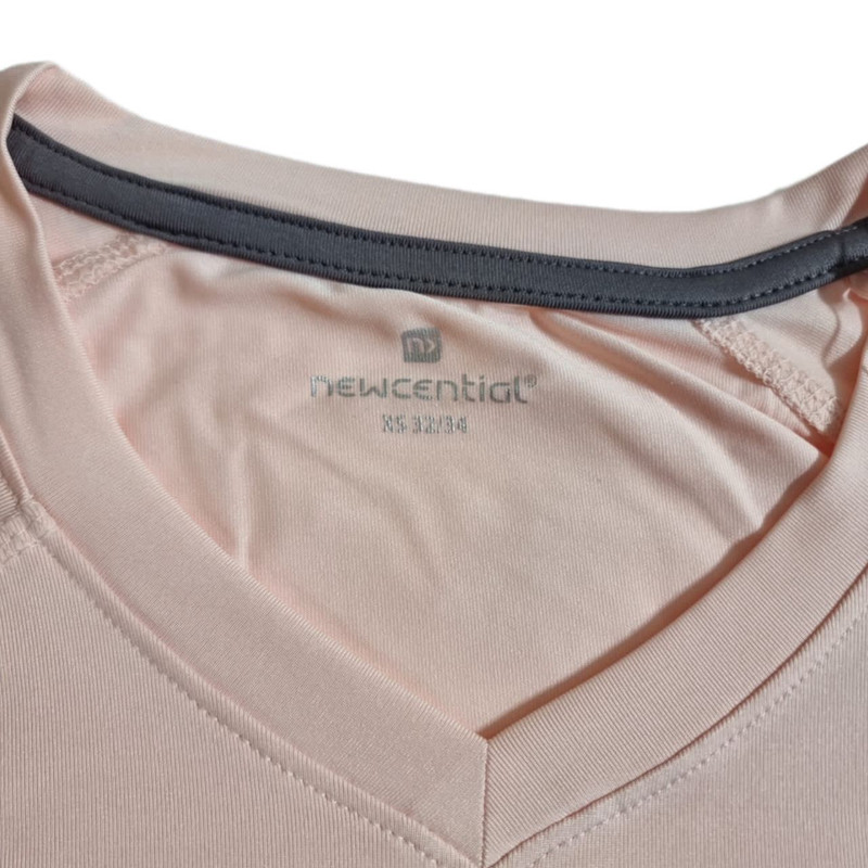 این محصول از برند معتبر و شناخته شده نیوسنشیال از کشور آلمان می باشد که لاین تخصصی ورزشی رو شامل می شود،این تیشرت از جنس مرغوب پلی استر و فلامنت و آلاستین ونخ تشکیل شده است که باعث فرم دهی بدن می شود و همچنین مقاوم در برابر شستشو و تعریق بدن است،رنگ آن صورتی کمرنگ و طرفین تیشرت به رنگ طوسی است که این ترکیب جلوه خاصی به لباس داده است،یقه آن هفت است.
