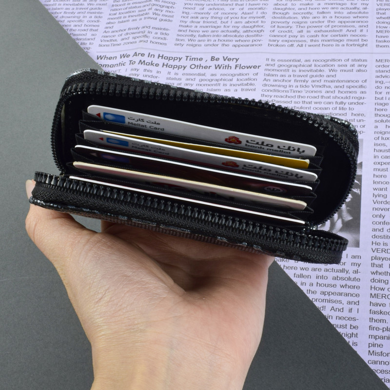 | سایر توضیحات | دارای 7 شیار مجزا جهت قرار دادن انواع کارت بانکی و هوشمند قابلیت قرارد دادن تا 20 کارت زیپ نرم و روان فضای داخلی مناسب |