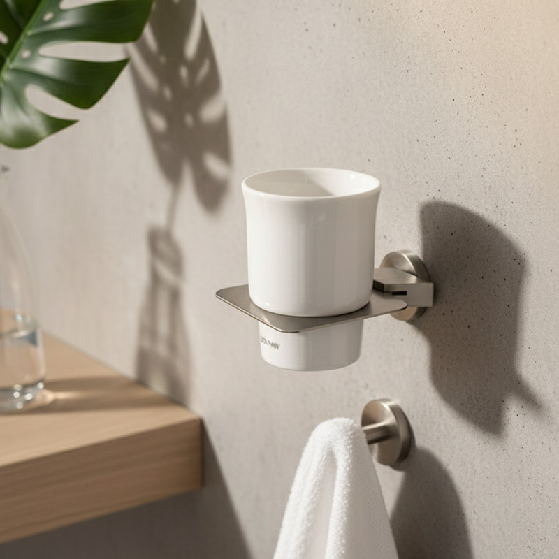جای مسواک استیل دلفین با طراحی زیبا و مدرن، ترکیبی از استیل ضد زنگ مقاوم و لیوان سرامیکی باکیفیت است که برای استفاده در سرویس بهداشتی و حمام ایدهآل میباشد. این جا مسواکی دیواری برند DOLPHIN علاوه بر زیبایی، در برابر رطوبت، زنگزدگی و تغییر رنگ مقاوم بوده و دوام بالایی دارد. نصب آسان، شستشوی راحت و بهداشت کامل از مهمترین ویژگیهای این محصول است. طراحی دیواری جای مسواک استیل دلفین باعث صرفهجویی در فضا و حفظ نظم در سرویس بهداشتی میشود. این محصول برای نگهداری مسواک، خمیر دندان و حتی سایر لوازم بهداشتی کوچک مناسب است. اگر به دنبال یک جا مسواکی استیل ضد زنگ با کیفیت عالی و ظاهری شیک هستید، مدل دلفین انتخابی کاربردی و بادوام خواهد بود.