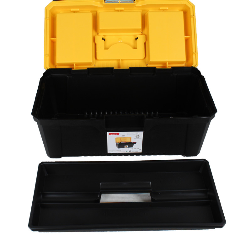 جعبه ابزار فوق یکی از انواع جعبههای ساده و محکمی است که میتوان در بازار یافت. شرکت «بابل» (Babol) این جعبه ابزار را تولید میکند و مدل آن «متال» نام دارد. این جعبه برای قرارگیری در صندوق عقب خودرو بسیار مناسب است و از سایزی مناسب بهره میبرد. این جعبه ابعادی برابر 18 × 20 × 40 سانتیمتر دارد.