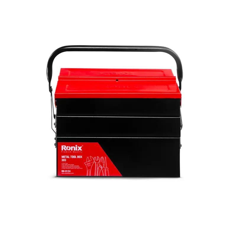 دستهی فلزی این جعبه ابزار رونیکس، در قسمت میانی خود دارای یک دستگیرهی پلاستیکی ABS خوشدست به طول 11.5 سانتیمتر است که به خاطر جنس خوب خود و داشتن جای قرارگیری انگشت، حمل و نقل جعبه را به راحتی و بدون فشار و خستگی دست انجام در پی دارد.