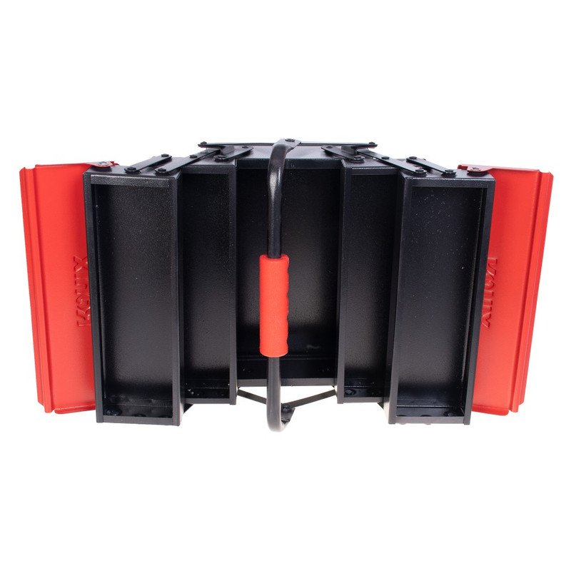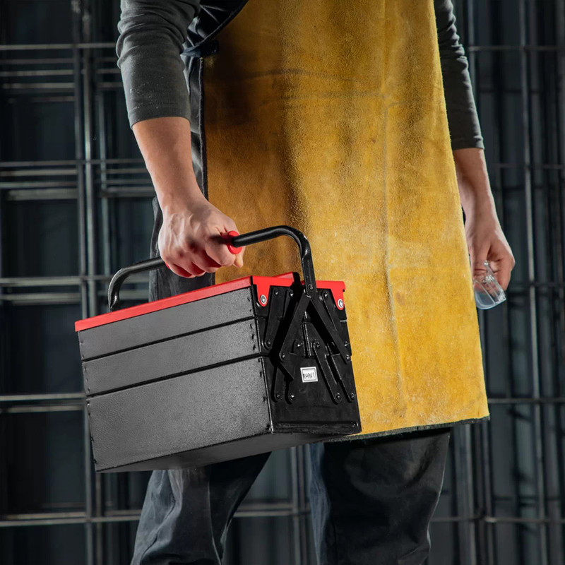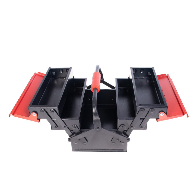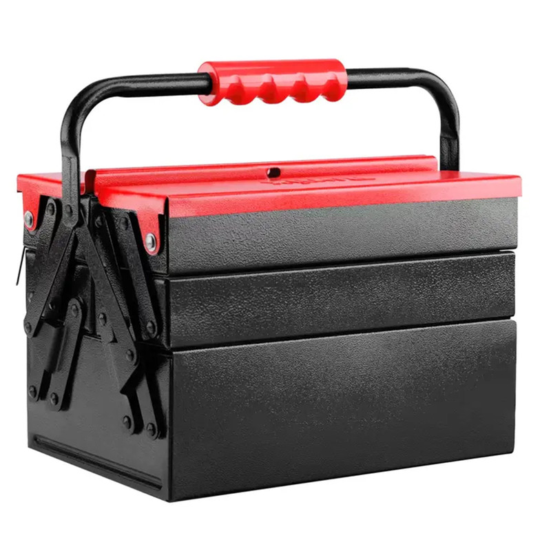 این جعبه ابزار تمام فلزی، از ورقهی فولادی ضد زنگ مرغوب ساخته شده است و تمامی قسمتهای آن به وسیلهی پینهایی بادوام و باکیفیت، به صورت محکم و منظم به هم متصل شده اند تا محل مطمئن و جاداری را برای انواع ابزار شما فراهم کنند.