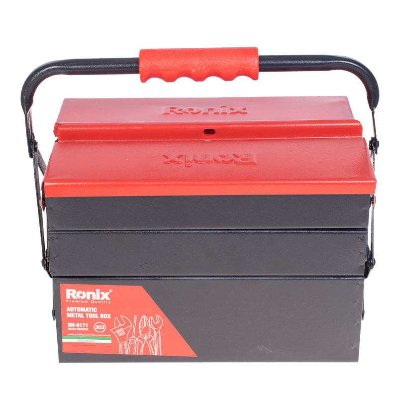 روکش بدنهی این جعبه ابزار رونیکس فلزی، رنگ کوره ای الکترواستاتیک است. این روش رنگ کاری ویژه و کاربردی، علاوه بر دوام بدنه، جعبه را ضد خش و خراشیدگی میکند.