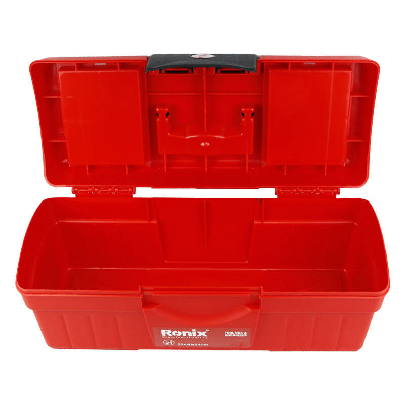 جعبه ابزار نشکن رونیکس 21 اینچی تولید شده از مواد اولیه با کیفیت و همچنین بدنه مقاوم و نشکن جهت کاربری های طولانی مدت می باشد . طراحی منحصر به فرد در قسمت بندی های روی درب جعبه ابزار و نهایت کیفیت در اتصال اجزای مختلف می باشد . همچنین مجهز به لولاهای بادوام و مجهز به سینی پلاستیکی برای نگه داشتن آچار، چکش و ابزارهای بلند و مجهز به قفل پلاستیکی مقاوم و روان میباشد و همچنین این محصول ساخت کشور ایران می باشد . سایز این محصول در محصولات رونیکس بزرگترین سایز جعبه ابزار میباشد و سایز 21 اینچ می باشد .طراحی قفل این جعبه بسیار محکم و با کیفیت می باشد .
