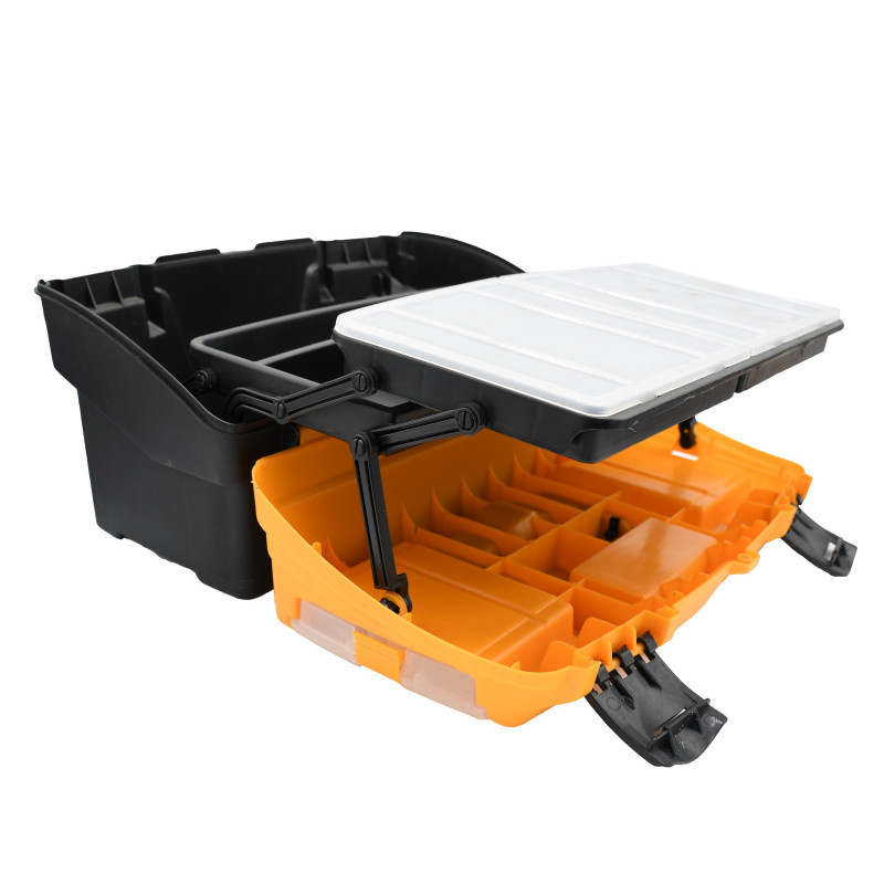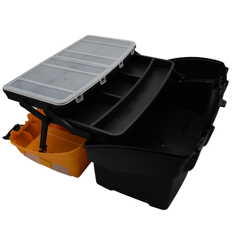 جعبه ابزار، محفظه، کیف یا جعبهای است که برای جانمایی، مرتب کردن، محافظت از ابزارها و حمل و نقل آنها به کار میرود. امروزه جعبه ابزارهای پلاستیکی و فلزی بیشتر مورد مصرف هستند و البته برای مشاغل تخصصی گوناگون، جعبه ابزارهای تخصصی نیز طراحی و ساخته شده است مانند جعبه ابراز باغبانی، جعبه ابزار الکترونیک، جعبه ابزار مکانیک و سایر تخصص ها و رشته ها. به این ترتیب، شاید بتوان به قطعیت گفت که جعبه ابزار، به یک وسیلهی ضروری برای هر مکان و هر شغل و موقعیتی تبدیل شده است.بسته به اندازه و تعداد محفظه های جعبه ابزار، در آن ابزارآلات دستی و برقیی مانند مینی فرز، چکش، میخ، انواع آچارها، پیچ گوشتی، انبردست، دم باریک، میخ، پیچ، مهره، واشر، مته و غیره قرار میگیرد. تمام این ابزار آلات و قطعات، به صورت منظم و در کنار هم درون محل های مشخص شده قرار میگیرند تا در هنگام نیاز، دسترسی بهتر و راحت تری را برای شخص فراهم کنند.محل های استفاده از جعبه ابزار، خانه، کارگاه، کارخانه، محل کار، داخل خودرو و سایر مکان هاست. کاربران، جنس بدنهی جعبه ابزارها را با توجه به محل و نوع استفاده از آن و نیز نوع حمل و نقل آن انتخاب می کنند. از جعبه ابزار پلاستیکی بیشتر در منزل و از جعبه ابزار فلزی، به دلیل مقاومت و استحکام آن، در بیرون از منزل و در محیط کار استفاده می شود.از موارد پراهمیت مد نظر خریداران جعبه ابزار، ظاهر آن و سپس جنس، استحکام، وزن، ظرفیت، تعداد قفسه ها و بخش ها و نیز برند آن است.جعبه ابزار مهر مدل BLO18 سایز 18 اینچ، از مواد اولیه پلاستیکی مناسب و باکیفیت تولید شده است و با وجود وزن 1800 گرمی خود، دارای استحکام و دوام قابل قبولی برای نگهداری و جابجایی ابزارآلات است.