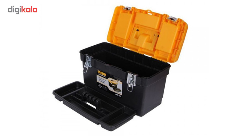 با این جعبه ابزار دیگر نگران گم شدن ابزارآلات خود نمی شوید و تمامی آن ها را میتوانید در این جعبه به خوبی جایگذاری ، نگهداری و حمل کنید .امروزه با تنوع ابزارآلات بیشمار نیاز به یک جعبه ابزار کامل و با کیفیت بیش از پیش احساس میشود و جعبه ابزارهای مهر با ابعادهای گوناگون و طراحی های مختلف نیاز شما را به خوبی برطرف خواهند کرد .جعبه ابزار مهر مدل JMT-16 توسط شرکت مهر Mehr که یک شرکت کاملا ایرانی است ، طراحی و تولید میشود و جعبه ابزاری با کیفیت و قیمت مناسب می باشد.این محصول ، تولید شده از پلاستیک فشرده ، محکم و نشکن می باشد .قسمت داخلی این جعبهابزار شامل 5 محفظه است. سینی پلاستیکی مجزایی که در بالای محفظهی اصلی قرار دارد، برای ابزارهای بلندی همچون انواع آچار و انبر مناسب است. علاوهبر مخزن اصلی این کیف ابزار، سه محفظهی کوچک و درپوش پلاستیکی روی درب جعبه، فضای مناسبی را در اختیار کاربر قرار میدهند. دو قفل فلزی در طرفین، استحکام بالایی به این جعبهابزار بخشیدهاند و دستهی تاشویی برای حمل راحتتر آن در قسمت بالایی تعبیه شده است.مجهز به دو قفل فلزی مقاوم و همچنین دارای طراحی ارگونومیک و منحصر به فرد ، از دیگر ویژگی های خوب این محصول به شمار میروند .جعبه ابزار مهر ، دارای یک سینی با قسمت های مجزا و دو محفظه روی درب است ، که برای پیچ و مهره و خورده ریز طراحی شده است.رنگ بدنه آن مشکی و رنگ درب نارنجی است و همچنین دسته قابلیت تاشدن روی درب را خواهد داشت .