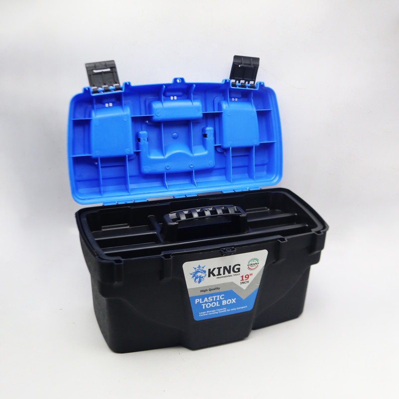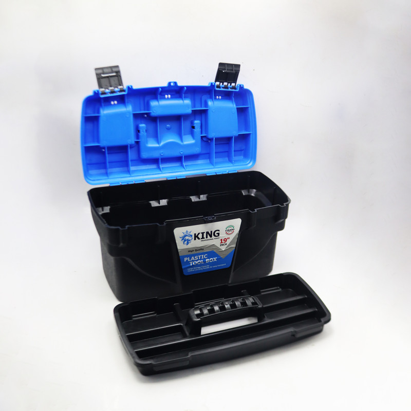 از مهمترین وسایل مورد نیاز در هر منزل و محل کاری، داشتن یک جعبه ابزار مناسب جهت نگهداری، جابه جایی و دسترسی بهتر به ابزار است. جعبه ابزار 19 اینچی «کینگ» علیرغم اینکه نمونه مشابه محصولات خارجی ست ولی از لحاظ کمی و کیفی توانسته خود را با برندهای معروف مطابقت بخشد. یکی از ویژگیهای این جعبه ابزار استحکام و زیبایی و برخورداری از وزنی بسیار کم برابر با حدود یک کیلوگرم است. از دیگر ویژگیهای آن میتوان به دو جایگاه مخصوص برای نگهداری از وسایلی نظیر پیچ و مته و...در قسمت فوقانی، اشاره کرد. سینی مجزا با شش محفظه ی جداگانه درون این جعبه ابزار به خصوصیات و کاربردهای آن میافزاید. این سینی به گونهای طراحی شده که علاوه بر برخوردار بودن از یک دسته محکم، شش جایگاه با ابعاد مختلف را برای شما در نظر گرفته تا هر گونه ابزار با سایزهای متفاوت را در آن دسته بندی کنید. جعبه ابزار کینگ دارای دو قفل پلاستیکی مستحکم است که مانع از باز شدن درب جعبه در هنگام حمل و جا به جایی میشود.