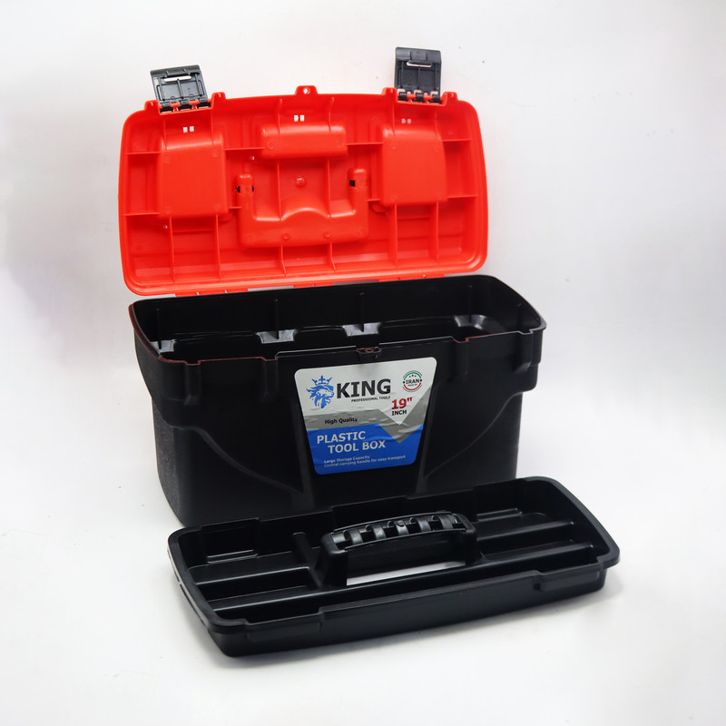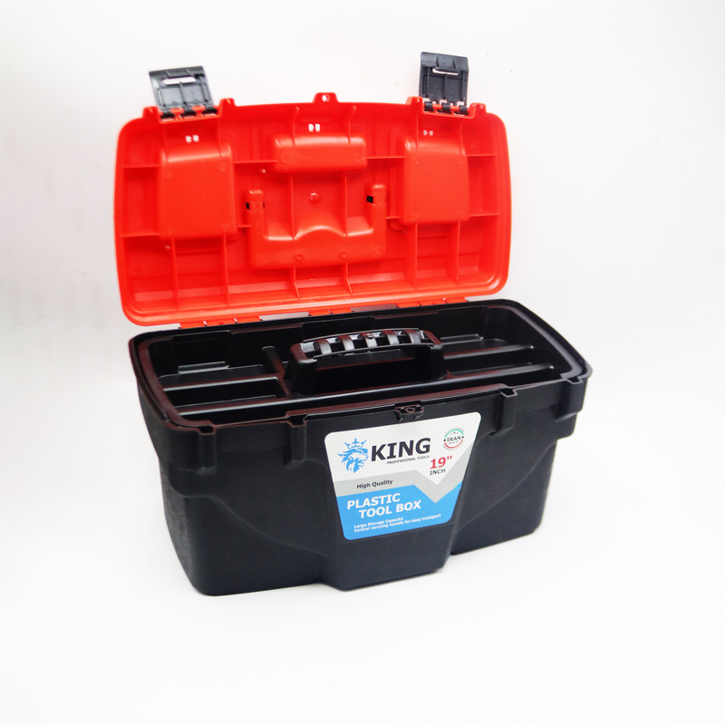 از مهمترین وسایل مورد نیاز در هر منزل و محل کاری، داشتن یک جعبه ابزار مناسب جهت نگهداری، جابه جایی و دسترسی بهتر به ابزار است. جعبه ابزار 19 اینچی «کینگ» علیرغم اینکه نمونه مشابه محصولات خارجی ست ولی از لحاظ کمی و کیفی توانسته خود را با برندهای معروف مطابقت بخشد. یکی از ویژگیهای این جعبه ابزار استحکام و زیبایی و برخورداری از وزنی بسیار کم برابر با حدود یک کیلوگرم است. از دیگر ویژگیهای آن میتوان به دو جایگاه مخصوص برای نگهداری از وسایلی نظیر پیچ و مته و...در قسمت فوقانی، اشاره کرد. سینی مجزا با شش محفظه ی جداگانه درون این جعبه ابزار به خصوصیات و کاربردهای آن میافزاید. این سینی به گونهای طراحی شده که علاوه بر برخوردار بودن از یک دسته محکم، شش جایگاه با ابعاد مختلف را برای شما در نظر گرفته تا هر گونه ابزار با سایزهای متفاوت را در آن دسته بندی کنید. جعبه ابزار کینگ دارای دو قفل پلاستیکی مستحکم است که مانع از باز شدن درب جعبه در هنگام حمل و جا به جایی میشود.