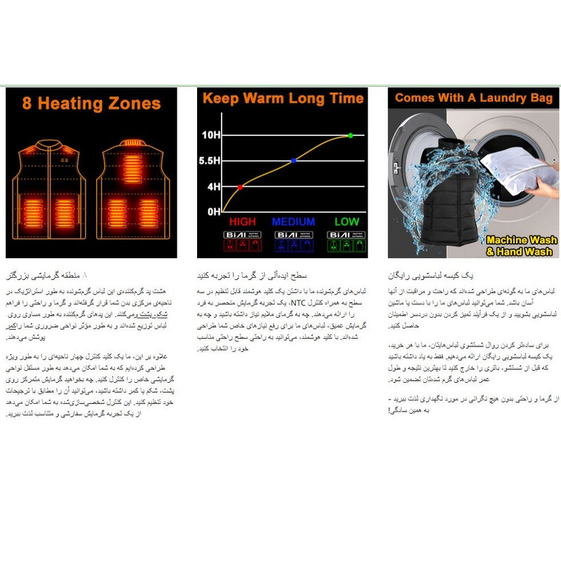 | سایر توضیحات | جلیقه حرارتی BIAL، جلیقه گرمکن برقی USB دار مردانه، کاپشن گرمکن بدن با باتری 16000 میلی آمپر ساعت برای شکار اسکی در فضای باز زمستانی ، یک جلیقه گرم شونده با کیفیت بالا، گرمای طولانی مدت، کنترل دمای قابل تنظیم، محافظت مناسب و قابلیت تنفس پذیری و جذب رطوبت عالی را ارائه میدهد. این جلیقه نه تنها به طور موثر جایگزین دستکش و روسری میشود، بلکه راحتی و لذت شما را در فصل سرما افزایش میدهد. برند BIAL از سال ۲۰۱۲ مشغول تحقیق و توسعه در زمینه لباسهای پوشیدنی گرمشونده بوده و تجربیات زیادی در این صنعت کسب کرده است. با این جلیقه حرارتی همیشه گرم بمانید. یک حسگر NTC در یقه و کمر لباس حرارتی تعبیه کردهایم که امکان کنترل دقیقتر دما را فراهم میکند. و جلوگیری از گرمای بیش از حد، تجربه کاربری ایمنتر و راحتتری را برای شما فراهم میکند. ما همیشه تجربه کاربری و ایمنی را در اولویت قرار میدهیم، به همین دلیل از فناوری پیشرفته کنترل NTC برای اطمینان از ثبات دما و ایمنی استفاده میکنیم. چه در حال ماجراجویی در فضای باز، فعالیتهای تفریحی یا زندگی روزمره باشید، لباسهای گرم ما ضمن برآورده کردن نیازهای شخصی شما، گرما و راحتی را فراهم میکنند. از یک تجربه گرم و منحصر به فرد لذت ببرید و دیگر هوای سرد را به یک مشکل تبدیل نکنید. حسگرهای NTC داخلی، هوشمندتر میشوند. فناوری محافظت در برابر گرمای بیش از حد قابل اعتماد : کنترل دقیق دما را تضمین کنید ، به حداکثر رساندن بهرهوری انرژی ، بهرهگیری از اقدامات ایمنی بیشتر : المنتهای گرمایشی نانولوله کربنی ،این لباس حرارتی از فیبر کربن با کیفیت بالا ساخته شده و با یک پوشش خارجی تقویت شده است ، دوام بیشتر. راندمان گرمایشی بالای فیبر کربن، توزیع یکنواختتر گرما را در مقایسه با ... تضمین میکند. سایر عناصر گرمایشی. با منبع تغذیه پرظرفیت 16000میلیآمپرساعت، زمان استفاده طولانیتری را فراهم میکند این امر یک منبع تغذیه قابل اعتماد و مداوم را تضمین میکند و به المنتهای گرمایشی در جلیقه گرمشونده مردانه اجازه میدهد تا به طور موثر عمل کرده و گرمای مطلوبی را فراهم کنند. این بدان معناست که میتوانید بدون نگرانی از قطع برق، به این لباس اعتماد کنید تا برای مدت طولانی شما را به راحتی گرم نگه دارد. با لباسهای گرم ما که دارای یقه داخلی مخملی هستند، نهایت راحتی را تجربه کنید. نرمی آن باعث میشود احساس کنید در آغوشی گرم و نرم قرار گرفتهاید. ناحیه گردن ما مجهز به المنتهای گرمایشی داخلی است که حس گرما و برشته بودن را تضمین میکند. لباسهای ما که از پارچه نایلونی ضد باد و ضد آب ساخته شدهاند، در برابر عناصر جوی محافظت ایجاد میکنند. بعلاوه، با زیپ باکیفیت ما، از تجمل لذت ببرید و راحتی یک جیب مخفی را کشف کنید. |