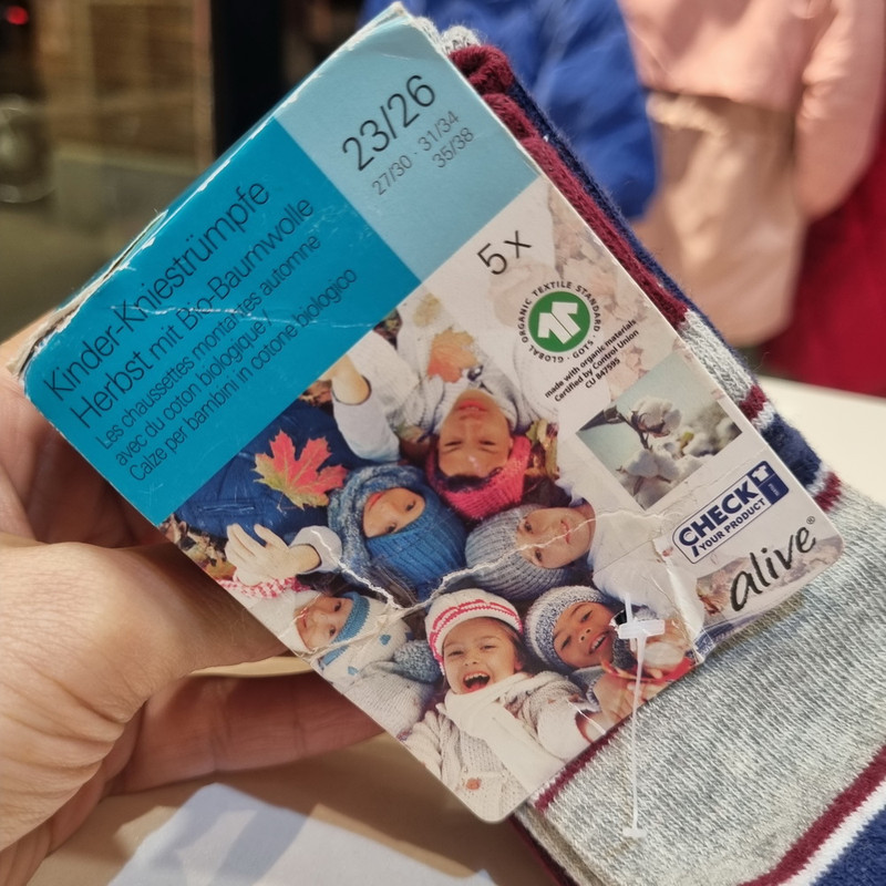 جوراب ساق بلند مارک اروپایی alive می باشد که در 5 طرح و رنگ متفاوت است . جنس جوراب ها 80% پنبه 18% پلی آمید و 2% الاستن می باشد. مواد اولیه جوراب ها کاملا ارگانیک بوده و دارای اسناندارد اکوتکس (®OEKO-TEX) که مرتبط با جنبههای اکولوژیک صنایع نساجی، چرم و پوشاک است می باشد.