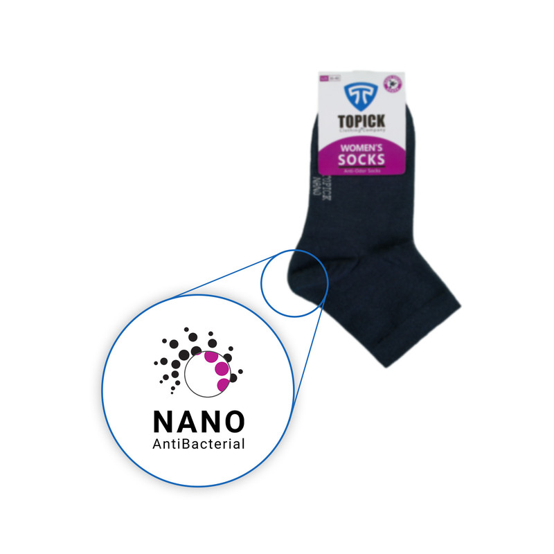 جوراب زنانه نانو تاپیک (بسته 2 عددی) نیم ساق با استفاده از فناوری نانو تولید شده و دارای خاصیت ضدبو، ضدقارچ و آنتیباکتریال است.