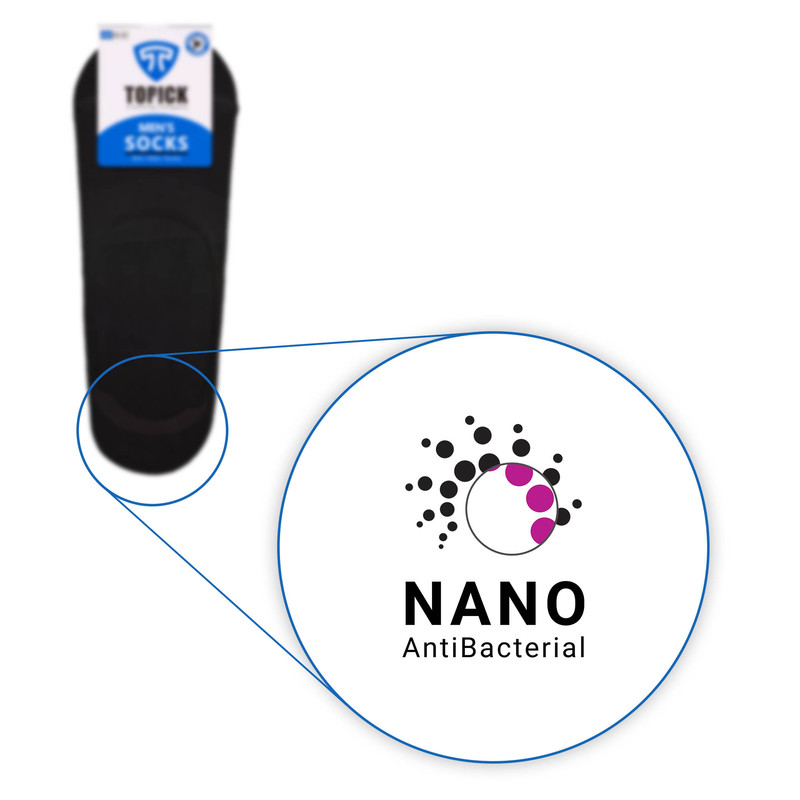جوراب نانو دارای خاصیت آنتی باکتریال است به این معنا که مانع رشد و تکثیر باکتری های مولد بوی بد در پا می شود. جوراب نانو آنتی باکتریال درواقع به جوراب نانو ضد بو نیز شهرت یافته است. جوراب آنتی باکتریال دارای ذرات اکسید روی می باشد که خواص دیگری ازجمله خشک شوندگی سریع و جذب رطوبت بالا را دارد.