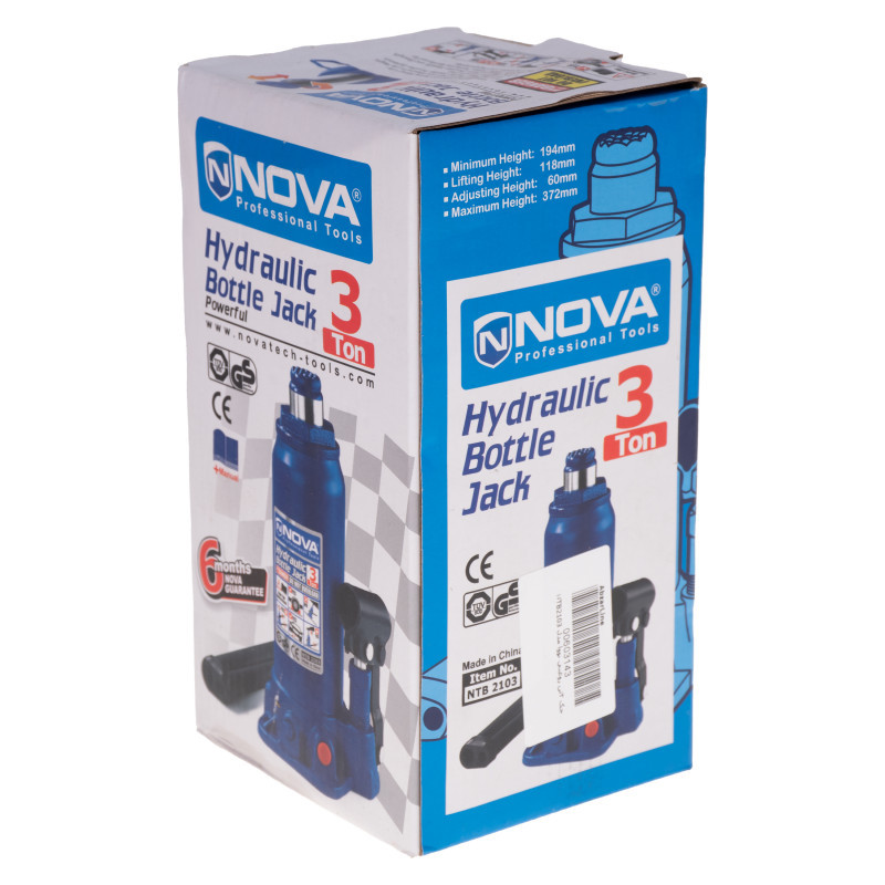 جک ها از لوازم جانبی ضروری در تعمیرگاه ها هستند که انواع مختلفی دارند و برای بلند کردن انواع خودرو ، جهت انجام امور تعمیراتی مورد استفاده قرار میگیرند. جک ها در مدل های مختلف با ظرفیت های مختلفی در بازار موجود هستند. یکی از پرکاربردترین جک ها جک روغنی یا جک هیدرولیک است که در خودروهای مختلف از لوازم ضروری آنها به شمار میرود.جک هیدرولیک خودرو نووا مدل ntb-2103 ، یک جک روغنی استوانهای است که برای بلند کردن انواع خودرو تا وزن حداکثر 3 تن ظرفیت دارد.این جک به اهرم دو تکه برای باز و بسته کردن مجهز شده است و پایهی آن جهت حفظ تعادل و جلوگیری از لغزش جک در هنگام بالا بردن خودرو ، به صورت پهن و با استحکام و مقاومت بالایی ساخته شده است.تمام نقاط بحرانی و تنش زای این جک دستی جهت افزایش کارایی و ایمنی تقویت شده است.حداقل ارتفاع این جک 194 میلیمتر ، ارتفاع بالابری آن 118 میلیمتر است و به پیچ تنظیم کنندهای به اندازهی 60 میلیمتر مجهز شده است. این پیچ بسیار روان ، مستحکم و مقاوم طراحی شده است. حداکثر ارتفاع این جک نووا برابر با 372 میلیمتر است.دو دسته و اهرم اضافه شونده به طول 17 سانتیمتر در بسته بندی این دستگاه قرار داده شده است.این جک با ظرفیت 3 تنی خود برای فعالیت های سنگین صنعتی در مدت زیاد بسیار مناسب و کاراست