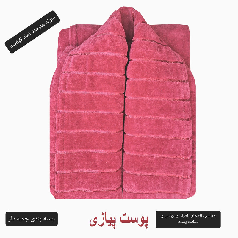 سایر توضیحات | حوله پالتویی سایز [xl] [2x][3x] دارای دوعدد جیب و کلاه و کمربند چسبیده طول حوله از سرشانه تا پایین 120 عرض حوله 135 عرض شانه 61 سانتی متر طول آستین 53 سانتی مناسب از وزن 55 الی 95 کیلو گرم افراد رنگ بندی جذاب و تنوع زیاد بسته بندی جعبه دار رنگ صدرصد ثابت بدون هیچ گونه رنگ دهی نرمی این حوله بخاطر تولید بانخ پنبه رینک ترک بسیار بالاس 👈🏾راهنمای شستشو حوله👉 در دمای 30 درجه با لباسشویی پر ومدت زمان 30 دقیقه شستشو انجام گیرد به هیچ عنوان از مواد آنزیم داراستفاده نکنین برای حفظ کیفیت و نرمی حوله از نرم کننده استفاده شود پس ازشستشو حوله را در هوای آزاد و دور از تابش مستقیم خورشید خشک نمایید |