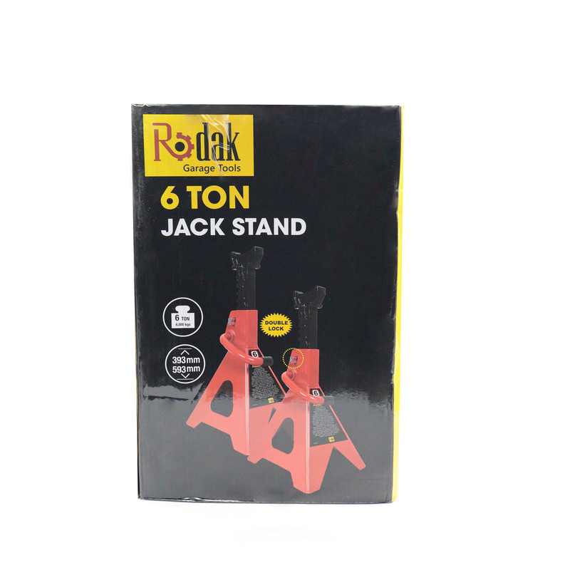 سایر توضیحات- مجموعه 2 عددی خرک 6 تن روداک مدل دنده ای - این خرک ها تماما از جنس فولاد ساخته شده اند و به زیبایی با رنگ کوره ای پودری به روش الکترو استاتیکی رنگ کاری شده اند تا بدنه را در برابر زنگ زدگی و آسیب به خاطر ضربه و خراش مقاوم کنند. - اختلاف ارتفاع حالت جمع شده و بازشده (ارتفاع کاربردی خرک) 180 میلی‌متر - مناسب برای کاربردهای خانگی، تعمیرگاهی و فروشگاهی/ نگهداشتن خودرو به همراه جک - دارای ضامن اطمینان - دارای 2 خرک ایستاده - 2 عدد خرک ایستاده با ظرفیت تحمل بار هر خرک 6000 کیلوگرم یا 6 تن - ابعاد هر خرک : طول: 27 ، عرض: 23.5 ، ارتفاع 41 سانتی‌متر در حالت بسته و در حالت باز 60 سانتیمتر - ابعاد بسته بندی : طول: 30 ، عرض: 27، ارتفاع: 47 سانتی‌متر - وزن بسته‌بندی : 14.400 کیلوگرم