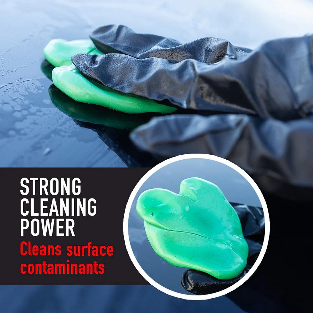 خمیرکلی محصولی جدید فوق العاده کاربردی و جایگزین مناسب سنباده 2000 و 2500 قبل از پولیش کاری و بسیار کاربردی برای دیتیلینگ کاران می باشد خمیر کلی بار ماشین یا خمیر کلی، یک ترکیب از رزین است که دیتیلینگ کاران از آن برای پاک کردن سطوح مختلف خودرو (رنگ بدنه، کاور بدنه، شیشه، فایبرگلاس و قطعات فلزی) از انواع جرمها و آلودگیها قبل از پولیش کاری ماشین استفاده میکنند.خمیر کلی به گونه ای طراحی شده تا به راحتی گرد و خاک ها، لکه ها و کثیفی هایی مانند شیره درختان یا لکه ها را از سطح رنگ بدنه خوردو از بین می برد و برای تمیز کردن و از بین بردن آلاینده های سطحی مانند شیره درختان ، فضله پرنده سطحی ، پوشش رنگی ، گرده لنت ، گرد و غبار ریلی و سایر کثیفی ها. ساخته شده از مواد باکیفیت و پیشرفته ، این خمیر دارای مواد شوینده بسیار خوبی است و می تواند اتومبیل های شما را مانند شیشه بسیار تمیز و صاف کند نحوه استفاده : چند قطره شوینده بدنه خودرو (شامپو) داخل اسپری آب اضافه کنید .تکه ای از خمیر را به اندازه کف دست جدا کرده و در کف دست پهن کنید و ابعاد 30x30 تا 40x40 روی بدنه خودرو محلول را اسپری کنید . سپس در حرکات افقی و عمودی با کمی فشار رو سطح بکشید . در صورت خشک شدن سطح جهت لیز شدن و تکه نشدن خمیر از اسپری آب بصورت مداوم استفاده کنید و پس از اتمام کار محل تمیزکاری را با آب شستشو دهید. از این خمیر میتوانید بر روی بدنه خودرو ، شیشه ها و چراغ جهت حذف آلاینده ها استفاده کنید. توصیه میشود جهت جلوگیری از آفتاب سوختگی و مات شدن رنگ خودرو و آسیب به رنگ هر 6 ماه یکبار بدنه خودرو بوسیله این خمیر پاکسازی شود. نکته مهم : پس از استفاده باقیمانده ، محصول استفاده شده باید در آب نگهداری شود و در صورت تغییر رنگ از استفاده آن خودداری فرمایید. جنس این خمیر کلی زبراست و برای خط و خش های بزرگتر و کلی استفاده می شود و بهیچ وجه جایگزین پولیش نمی باشد و قبل از پولیش کاری و برای سهولت کار و بالا بردن کیفیت پولیش استفاده می شود . روش استفاده : سطح مورد نظر را با اسپری شیشه پاک کن دائم مرطوب کرده و خمیر را به تمامی نقاط بمالید. از کشیدن آن بروی سطح خشک خودداری شود. (از خشک شدن آن اکیدا جلوگیری شود) توجه: برای استفاده از محصول حتما از دستکش مخصوص دیتیلینگ خودرو تمیز استفاده کنید در معرض بودن نور مستقیم خورشید جلوگیری کنید بعد از پایان کار خمیر را در جعبه گذاشته و در آن را ببندید. محصولی که در این صفحه ارائه میشود رنگ سبز و زبر است .