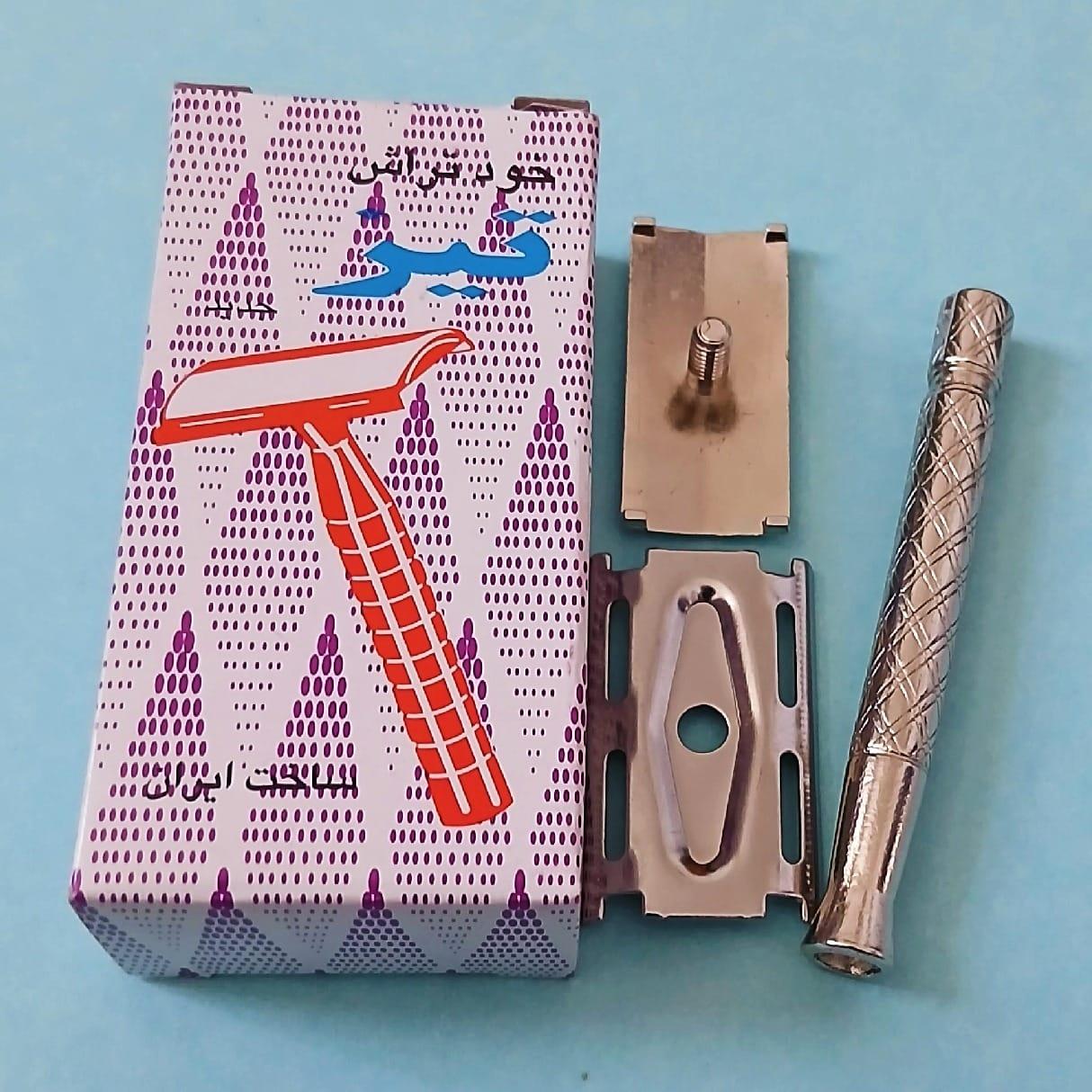 خودتراش تمام فلزی شانه دار ضدزنگ ج توضیحات بیشتر خودتراش سنتی مارک تیز TIZ صد در صد فلزی و ضد زنگ تولید سالهای گذشته و کاملاً نایاب بسیار زیبا و کاربردی ساخت بسیار با کیفیت کاملاً نو و دارای جعبه دارای شانه یا گارد ضخیم و آبکاری شده برای اصلاح ایمن همچنین بدون شانه یا گارد هم براحتی دسته تا آخر پیچ میشود دارای کلاهک زیبا و با کیفیت ساخت بالا و دقیق و آبکاری شده دارای دسته کوتاه و زیبا یکعدد تیغ کامل درون آن قرار داده و مثل ژیلت براحتی اصلاح کنید مناسب برای استفاده آقایان و بانوان