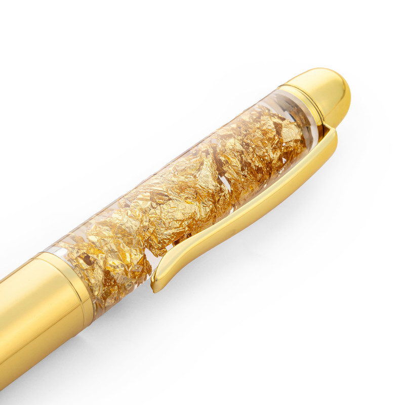 این خودکار خاص با بهره‌گیری از تکنولوژی روکش طلا ساخته شده است؛ سر، گیره و نوک آن آب‌طلا بوده و درون محفظه‌ی شیشه‌ای شفاف آن فویل‌های طلایی قرار دارد که با هر تکان خودکار، درخششی چشم‌نواز و متفاوت ایجاد می‌کنند. لایه‌ای نازک از طلا روی این فویل‌ها لمینت شده تا زیبایی و ماندگاری بیشتری داشته باشند.