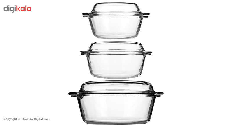 ست سهعددی خوراکپز «پاشاباغچه» (Pasabahce) کد «159021» یکی از نمونههای مناسب برای پخت و سرو غذا در مهمانی است. این ست از جنس شیشهی نشکن و مقاوم به حرارت است که در شیشهای نیز دارد. ظرف بزرگ 2.17 لیتر، ظرف دیگر 1.45 لیتر و ظرف کوچکتر 0.84 لیتر گنجایش دارد. اگر میخواهید خوراکی خوشمزه و طبقهبندیشده با مواد و سبزیجات متنوع تهیه کنید که با همان ظاهر و ترکیب سرو شود، این ظروف بهترین انتخاب شما خواهند بود. حجم متنوع این ظروف به شما امکان میدهد تا برای هر تعداد مهمان بتوانید خوراک موردنظرتان را بپزید و با همان ظرف سرو کنید. شیشهایبودن بدنه و درپوش آن، تمامی محتویات چیدهشده را بهوضوح نشان داده و مرحلهی سرو را برایتان آسان میسازد. درهای این ظروف عمق مناسبی دارد که میتوان در صورت نیاز از آنها برای پخت یا سرو یک غذای کمحجم نیز استفاده کرد. هر دو قسمت خوراکپزها دسته دارد که بهراحتی میتوان آنها را حمل کرد. این محصول مانند دیگر ظروف پاشاباغچه از کیفیت مطلوبی برخوردار بوده و یکی از ظروف مناسب و پرمصرف در آشپزخانه است. این ست هدیهای مناسب هم بهشمار میرود.