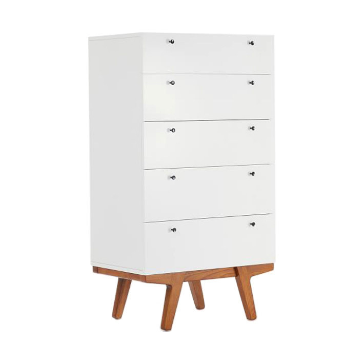 طراحی دراور هیراد مدل D117 به سبک Mid-century است. فرم های هندسی با خطوط ظریف و استفاده از مواد طبیعی در محصولات از شاخصه های بارز این سبک طراحی است. این محصول با این هدف طراحی شده که با انواع دکوراسیون همخوانی داشته باشد.جنس این محصول ام دی اف می باشد ابعاد محصول به این شرح می باشد طول 70 عرض 45 ارتفاع 130