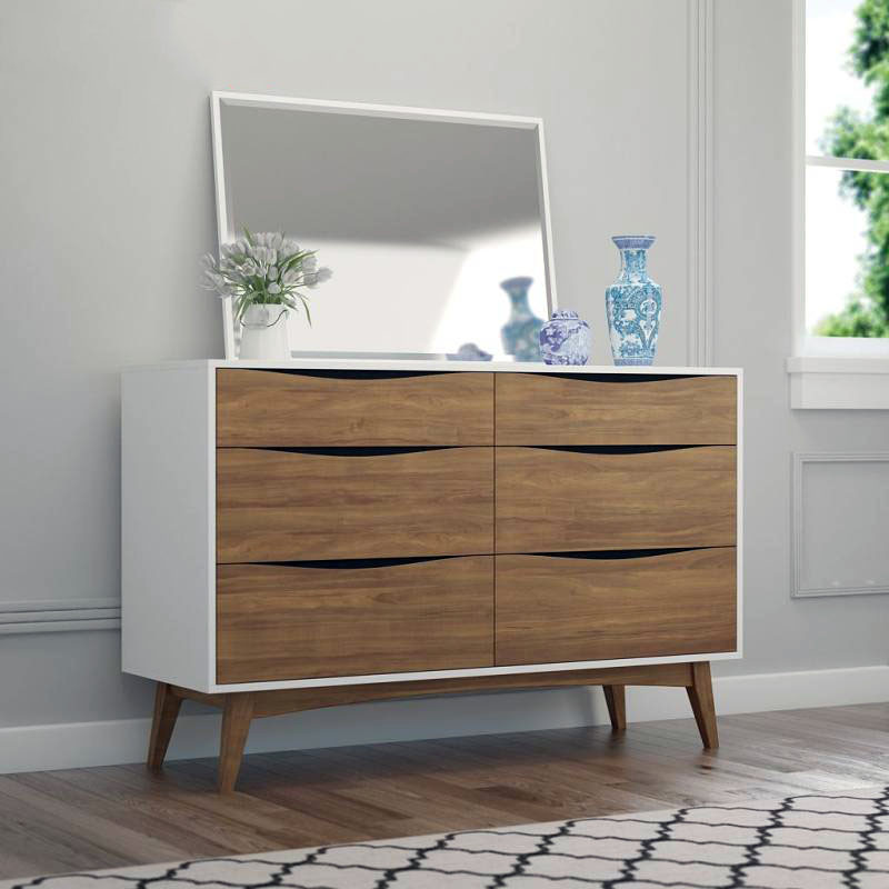 دراور هیراد مدل D120 ،با طراحی مدرن و زیبا دارای استحکام و کیفیت بی نظیری بوده و برای ساخت آن از استاندارد های اروپایی استفاده شده است. کشو های این دراور نسبتا عمیق بوده و فضای بسیار مناسبی برای قرار گیری لباس ها به وجود آورده است. با توجه به ابعاد مناسب این دراور می توان از آن به عنوان میز آرایش نیز استفاده کرد.دراور هیراد مدل D120 به سبک Mid-century است. فرم های هندسی با خطوط ظریف و استفاده از مواد طبیعی در محصولات از شاخصه های بارز این سبک طراحی است. این محصول با این هدف طراحی شده که با انواع دکوراسیون همخوانی داشته باشد.جنس این محصول ملامینه می باشد