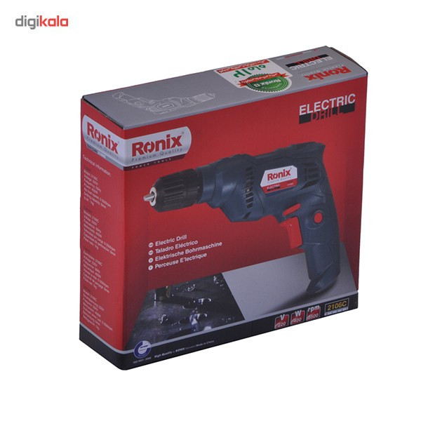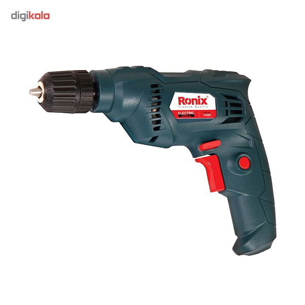 دریلها ازجمله ابزارهای کاربردی محسوب میشوند که وجود آنها در هر خانهای موردنیاز است. این دستگاهها انواع بسیار گوناگونی دارند و برای انجام کارهای مختلفی مورداستفاده قرار میگیرند. درصورتیکه به شکلی حرفهای با دریل کار نمیکنید، میتوانید دریلی ساده را تهیه کرده و در مواقع موردنیاز از آن استفاده کنید. محصولی که در تصویر مشاهده میکنید برای چنین منظوری بسیار مناسب است. این دستگاه دریل شرکت «رونیکس» (Ronix) است که تحت عنوان «2106C» تولید میشود. این دریل توانی برابر 400 وات داشته و با برق شهری کار میکند. سرعت گردش این دستگاه 3500-0 دور بر دقیقه بوده و با کمک کلیدی میتوانید جهت چرخش آن را تغییر دهید. این دستگاه وزن سبکی برابر 1 کیلوگرم دارد و بر اساس استاندارد CE (استاندارد اروپا) تولید میشود. شرکت رونیکس برای راحتی بیشتر کاربر، این دستگاه را به قفل سوییچ مجهز کرده است. با کمک این کلید، دیگر نیازی به نگهداشتن شاسی دریل برای سوراخکاری ندارید، سهنظام دستگاه بهطور مداوم میچرخد و شما با تسلط و قدرت بیشتری میتوانید عمل دریلکاری را انجام دهید. سهنظام این دریل خودکار و از نوع 6.5 میلیمتری بوده و برای باز و بسته کردن مته نیازی به آچار ندارید. این محصول در برابر گردوغبار نیز عایق است.