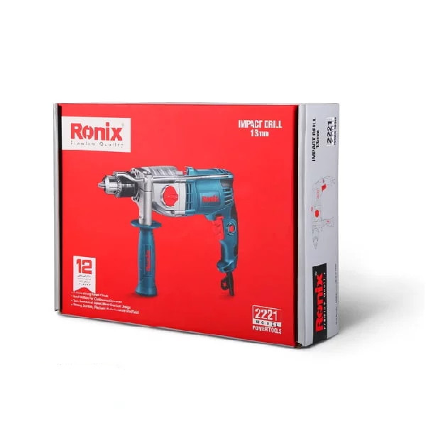 دریل رونیکس مدل 2221 با وزن 3 کیلوگرم و توان موتور 1050 وات دارای قابلیت سوراخکاری چکشی و گیربکس دو سرعته صنعتی 0-1200 و 0-3200 دور در دقیقه می‌باشد. این دریل برقی دارای سه نظام آچاری 13 میلی‌متر است. از دیگر ویژگی‌های دریل گیربکسی چکشی رونیکس مدل 2221 می‌توان به کلید الکترونیک دیمردار، نیم تنه فلزی، کلید قفل کن، آرمیچر و بالشتک‌های صنعتی با بالاترین کیفیت سیم پیچی مطابق با استاندارد CE، طراحی جدید و ارگونومیک بدنه جهت سهولت در کاربری، همراه با دسته جانبی گردان ارگونومیک 360 درجه اشاره کرد.