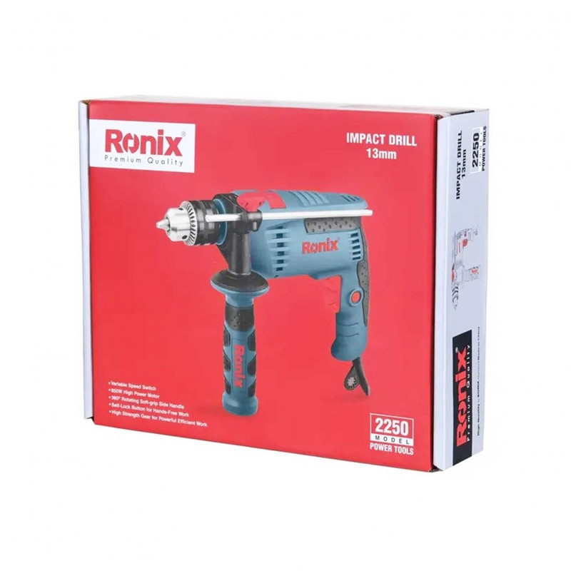 دریل برقی مدل 2250، یکی از قدرتمندترین دریلهای چکشی رونیکس، دارای موتور مقاوم و صنعتی 850 وات، طراحی ارگونومیک و پوشش خوشدست در بدنه بوده و در ساخت آن، دقت و کیفیت فوقالعاده بالایی به کار رفته است. قابلیت استفاده از این محصول در دو حالت سوراخکاری معمولی و چکشی، موتور قدرتمند 850 وات و 3000 دور، نفوذ آسان در مصالح ساختمانی بسیار متراکم چوبی، فلزی و بتنی، از مهمترین ویژگیهای این دریل چکشی منحصربهفرد هستند.