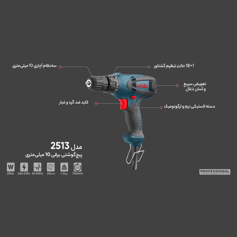 ویژگیهای دریل | سیستم گردش چپگرد , سیستم گردش راستگرد , قابلیت کنترل سرعت |