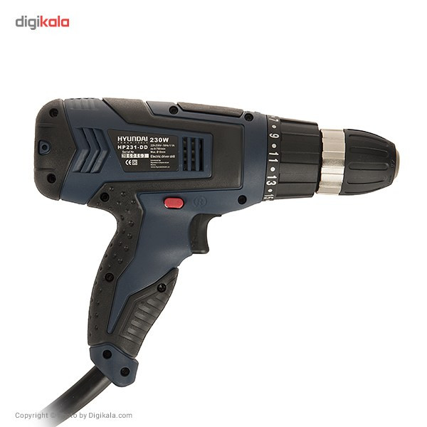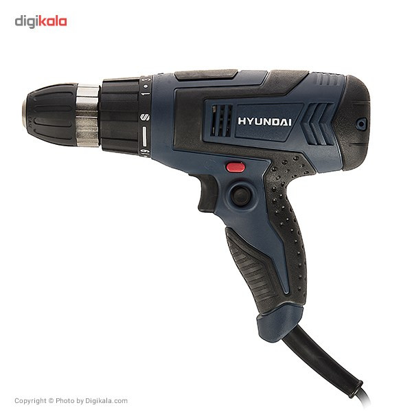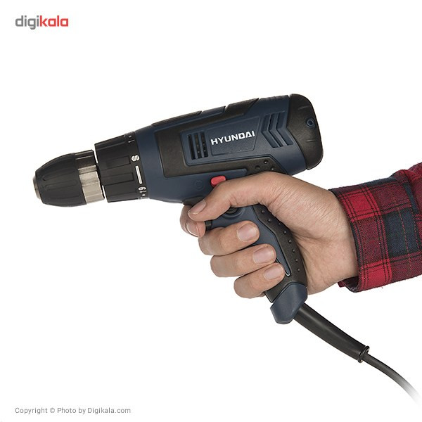 اگر قصد تهیهی ابزاری کارآمد برای سوراخکاری و باز و بسته کردن پیچهای مختلف را دارید، محصول فوق انتخابی مناسب خواهد بود. این دستگاه به شکلی مستقیم به برق شهری متصل میشود و نیازی به باتری ندارد. این دریل پیچگوشتی توانی برابر 230 وات داشته و نیاز شما به یک دریل و مجموعهای از چندین پیچگوشتی را پاسخ خواهد داد. سرعت گردش این دستگاه بین بازهی 700-0 دور بر دقیقه قرار دارد و کاربر قادر است با تغییر نیروی انگشت خود روی کلید دستگاه این سرعت را تنظیم کند. این دستگاه قابلیت گردش به سمت چپ و راست را داشته و میزان گشتاور آن در 19 حالت مختلف قابل تنظیم است. از دیگر مزایای این دستگاه میتوان به سهنظام خودکار آن اشاره کرد. این سهنظام از نوع 10 میلیمتری بوده و برای تعویض مته و سری پیچگوشتی، شما را از هرگونه آچاری بینیاز خواهد کرد. دستهی این محصول از خاصیت ضد لغزش برخوردار بوده و کمک زیادی به کاربر میکند. این محصول توسط شرکت «هیوندای» (Hyundai) تولید میشود و از کیفیت ساخت مناسبی برخوردار است.