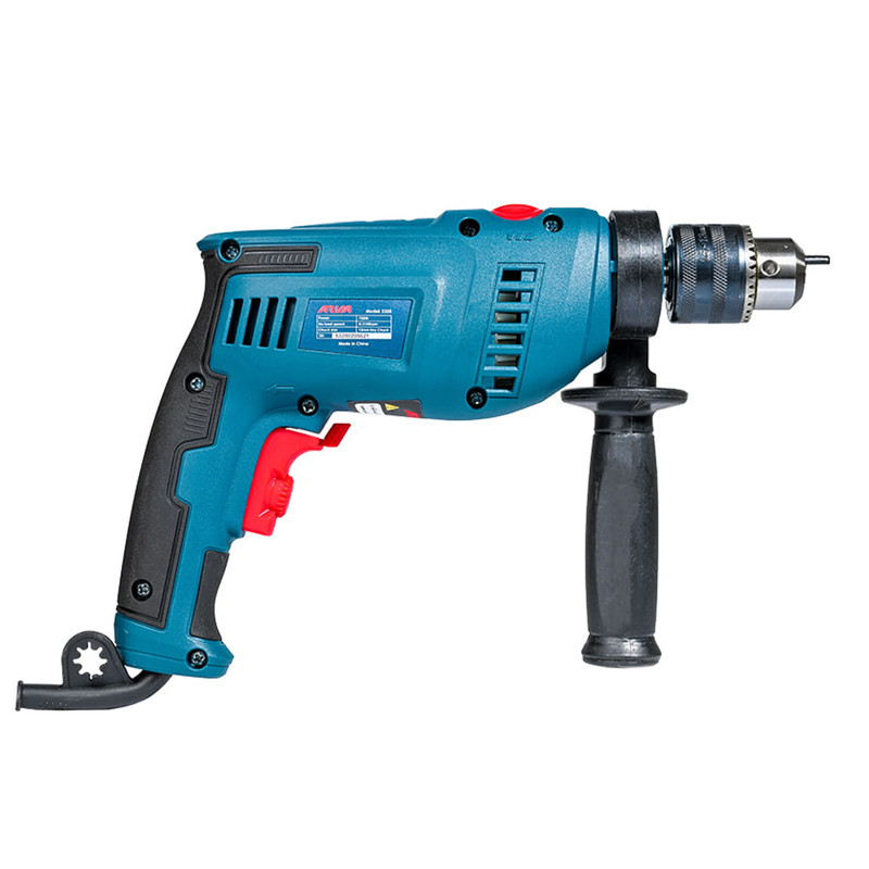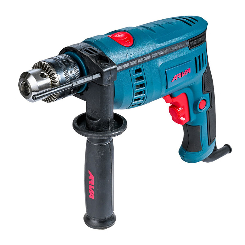 دریل چکشی 750 وات آروا مدل 5328 با سه نظام آچاری 13 میلیمتری یکی از دریل های چکشی صنعتی است که دارای کلید و بلبرینگ ضد غبار جهت افزایش طول عمر دستگاه میباشد، موتور پرقدرت، مجهز به سیم پیچی %100 مس و تحمل دمای 220 درجه سانتی گراد است که توان 750 وات و سرعت گردش آن 3100 دور در دقیقه میباشد.این دریل دارای قابلیت قفل سوئیچ و کنترل سرعت(دیمر) دارد که برای سرعت گرفتن کار برای کاربر اهمیت بالایی دارد. دارای کابل ورودی برق 2 متری با استاندارد VDE آلمان که باعث راحتی کاربر میشود، دنده های قوی فلز کاری شده جهت افزایش دوام محصول است، قابلیت سوراخکاری در حالت چکشی و توانایی سوراخکاری در چوب: 25 میلیمتر، در فلز: 13 میلیمتر و در بتن: 13 میلیمتر را دارد.همچنین سیستم تغییر جهت چرخش کلید چپ گرد و راست گرد هم دارد.