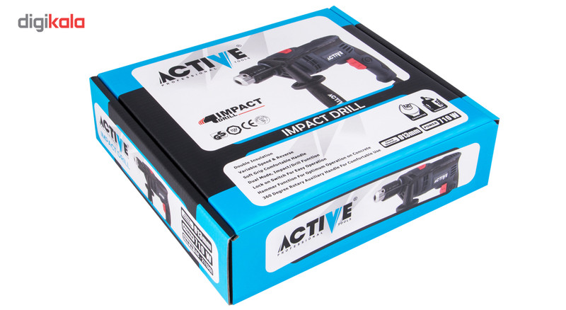 « دریل برقی اکتیو مدل AC2213CI » دارای موتور 710وات عمدتا جهت کاربری خانگی جهت سوراخکاری چوب ، آهن و بتن استفاده میشود. به دلیل وجود حالت چکشی، با گذاشتن کلید بر روی حالت چکشی، به راحتی میتوان سوراخکاری بر روی مصالح ساختمانی از قبیل دیوارها را انجام داد. جهت راحتی کار، دسته گردان 360 درجه نیز بر روی این دریل وجود دارد. مصرفیترین قطعه موجود در دریل، عمدتا ذغال آن است که یک جفت ذغال اضافه نیز به همراه این دریل ارائه میشود. این دریل دارای کلید الکترونیکی دیمردار (تنظیم مقدار گردش سهنظام) هست تا با توجه به نیاز قدرت چرخش سهنظام را تنظیم نمود. همچنین این دریل دارای دکمه چپگرد و راستگرد است که برای دریلکاری در حالت چپگرد و راستگرد استفاده میگردد. وجود قفل کن کلید نیز از دیگر خصوصیات این دریل جهت راحتی کاربر هنگام استفاده از این دستگاه برای مدت طولانی و مداوم هست. تمامی مراحل ساخت موتور این دریل از قبیل آرمیچر و بالشتک با استفاده از دستگاههای تمام اتوماتیک منطبق با آخرین فناوری روز دنیا تولید شده تا عمر مفید دستگاه به حداکثر برسد. بنه این دستگاه دارای طراحی ارکونومیک جهت خوشدستی و راحتی کاربر در حین کار است و همچنین این بدنه عایق دوبل و از جنس PA6+GF30 بهترین مواد جهت ساخت بدنه ابزار آلات برقی هست. همچنین بدنه این دستگاه دارای گیره جهت آویزان نمودن دستگاه نیز است. با اعمال عملیات گرمایشی استاندارد و سخت کاری بر روی دندههای این دریل، همواره سعی شده تا دندهها تقویت شده وعمر دندهها افزایش یابد.