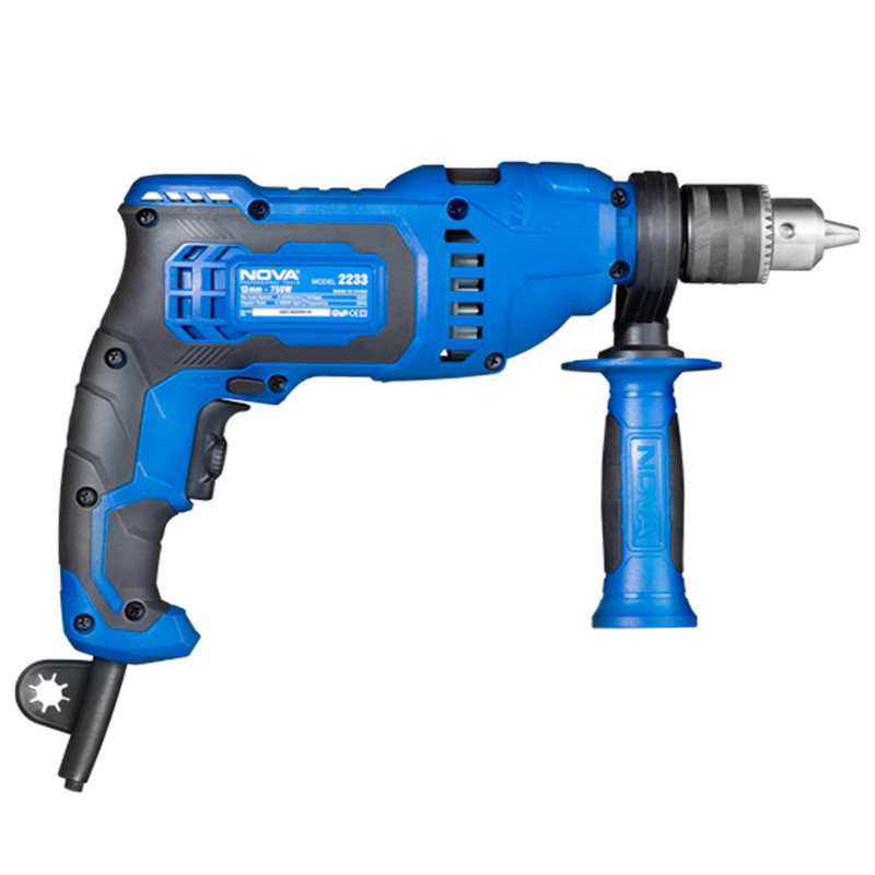 دریل 2234 با موتور صنعتی پرقدرت 750 وات و سه نظام آچاری 13 میلیمتری یک ابزار کارآمد و ایده آل برای انجام کارهای مختلف است. آرمیچر و بالشتکهای آن مطابق با استانداردهای CE اروپا تولید شدهاند، به همین دلیل این ابزار از نظر کیفیت و ایمنی بسیار قابل اعتماد هستند. دریل 13 میلیمتری چکشی 750 وات نووا با طراحی ارگونومیک و روکش ضد لغزش سبب استفاده طولانی مدت و راحتی کاربر شده است و با برخورداری از حالت دریل و دریل چکشی با حداکثر تعداد ضربه در حالت چکشی، به عنوان یک ابزار مناسب جهت انجام انواع کارهای ساختمانی و صنعتی شناخته شده است. دکمه قفل کن کلید برق برای سهولت کار در حالت مداوم، کابل برق ضخیم با دوشاخه صنعتی، و کیف BMC مقاوم، از دیگر ویژگیهای این دریل هستند که نشان دهنده کیفیت و سطح ایمنی آن هستند.