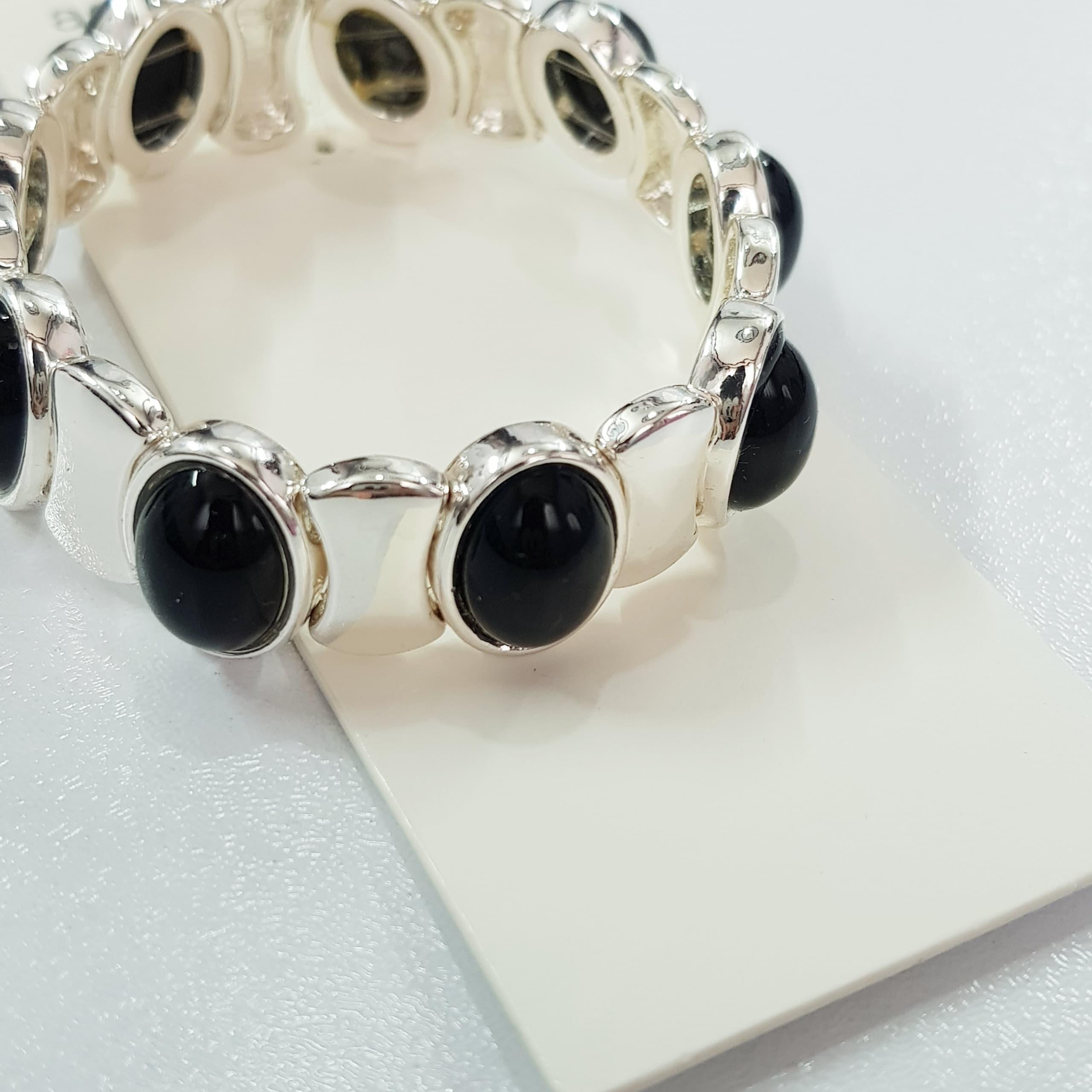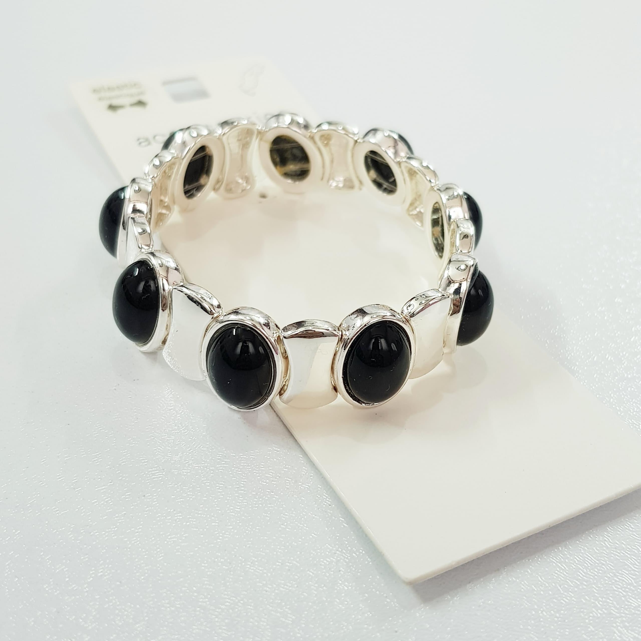 دستبند بنگل کشی نقره ای نگین مشکی برند Accessories کد ۲۷۰۸۲