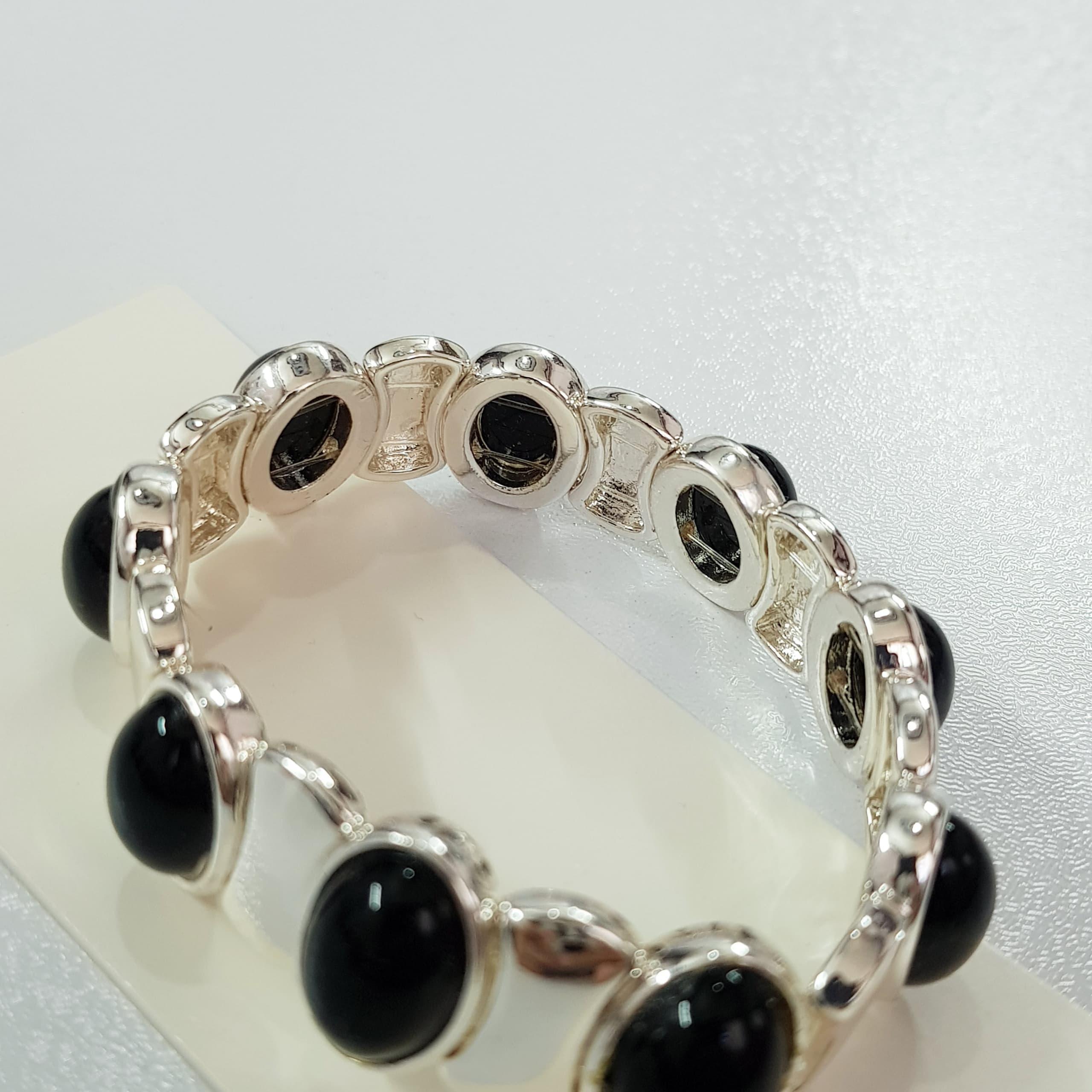 دستبند بنگل کشی نقره ای نگین مشکی ، زیبا و مینیمال ، فری سایز ، استفاده راحت ضد حساسیت برند Accessories تحت لیسانس آلمان