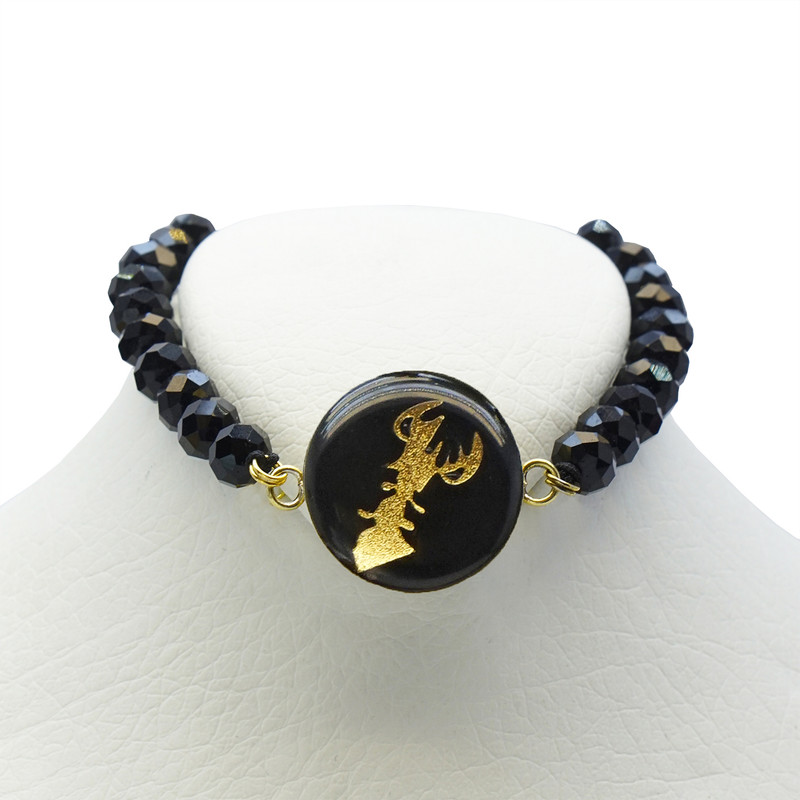 | سایر توضیحات | نماد ماه روکش طلا است که همراه با سنگ انیکس در پلاک دستبند کار شده. |