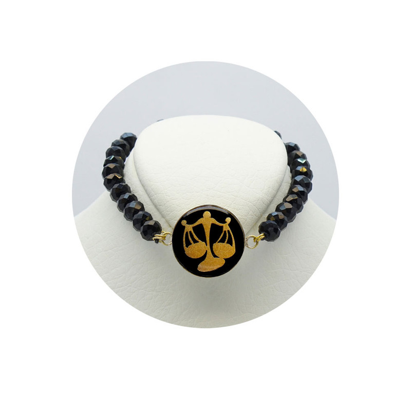 | سایر توضیحات | نماد ماه روکش طلا است که همراه با سنگ انیکس در پلاک دستبند کار شده. |