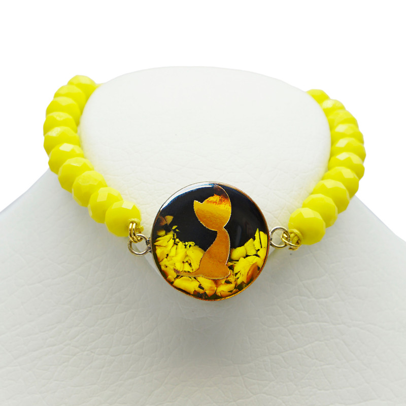 این دستبند با رنگ زرد شاد و چشمنواز، حس انرژی و گرما را به استایل شما میبخشد. سنگ اونیکس زرد در کنار طراحی مینیمال، این دستبند را به انتخابی جذاب برای استفاده روزمره یا ستکردن با سایر زیورآلات تبدیل کرده است. اتصالات فلزی آن ضدحساسیت بوده و در برابر تعریق و رطوبت، تغییر رنگ نمیدهند.