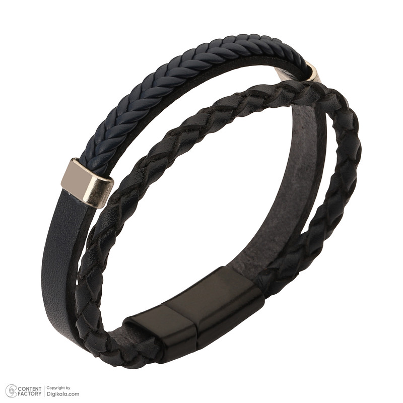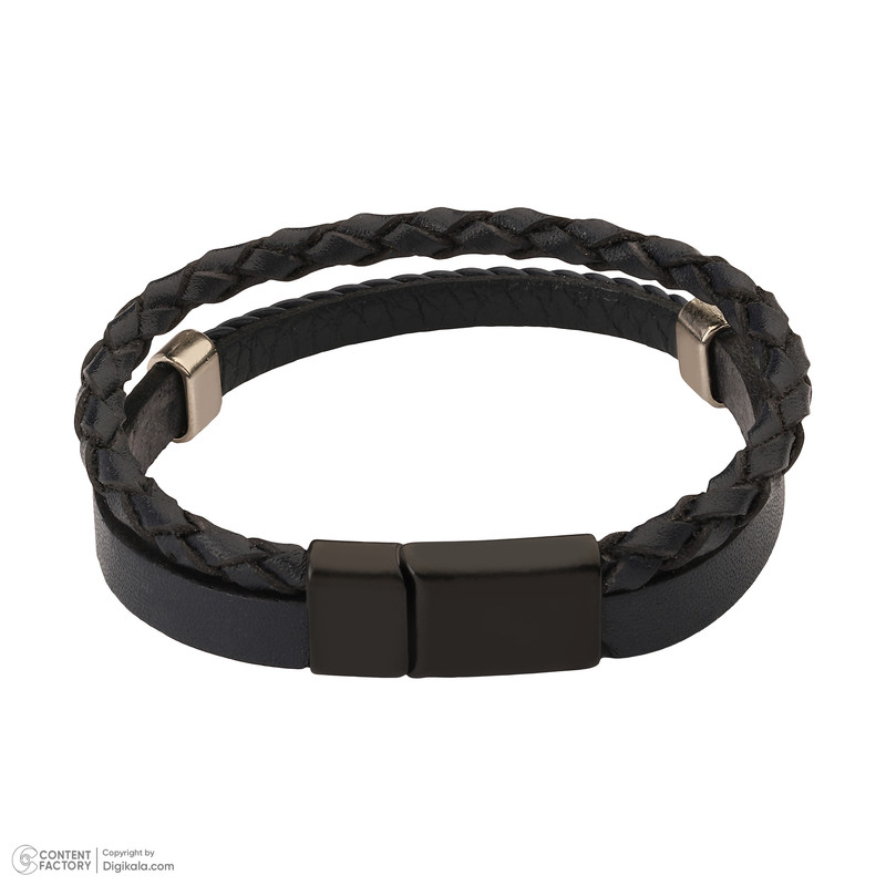 این دستبند با دو بند چرمی بافتدار طراحی شده تا حس ظرافت و قدرت مردانه را در کنار هم به نمایش بگذارد.