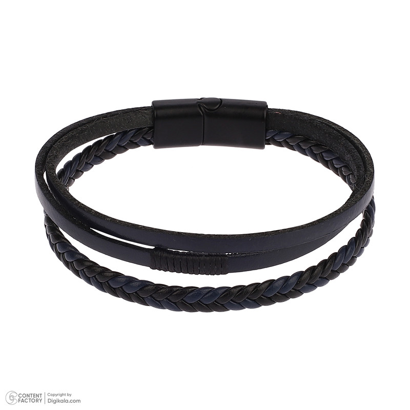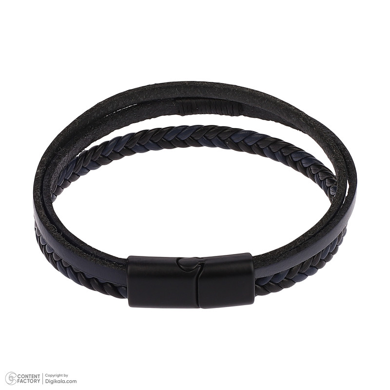 طراحی این محصول شامل دو بخش است: یک بند چرمی ساده و یک بند بافتهشده با رنگ ترکیبی مشکی و سرمهای، که جلوهای چشمنواز و مدرن به آن بخشیده است. قفل آهنربایی فلزی مشکی نه تنها ایمنی استفاده را افزایش میدهد، بلکه به راحتی قابل باز و بسته شدن است و زیبایی بصری خاصی دارد.