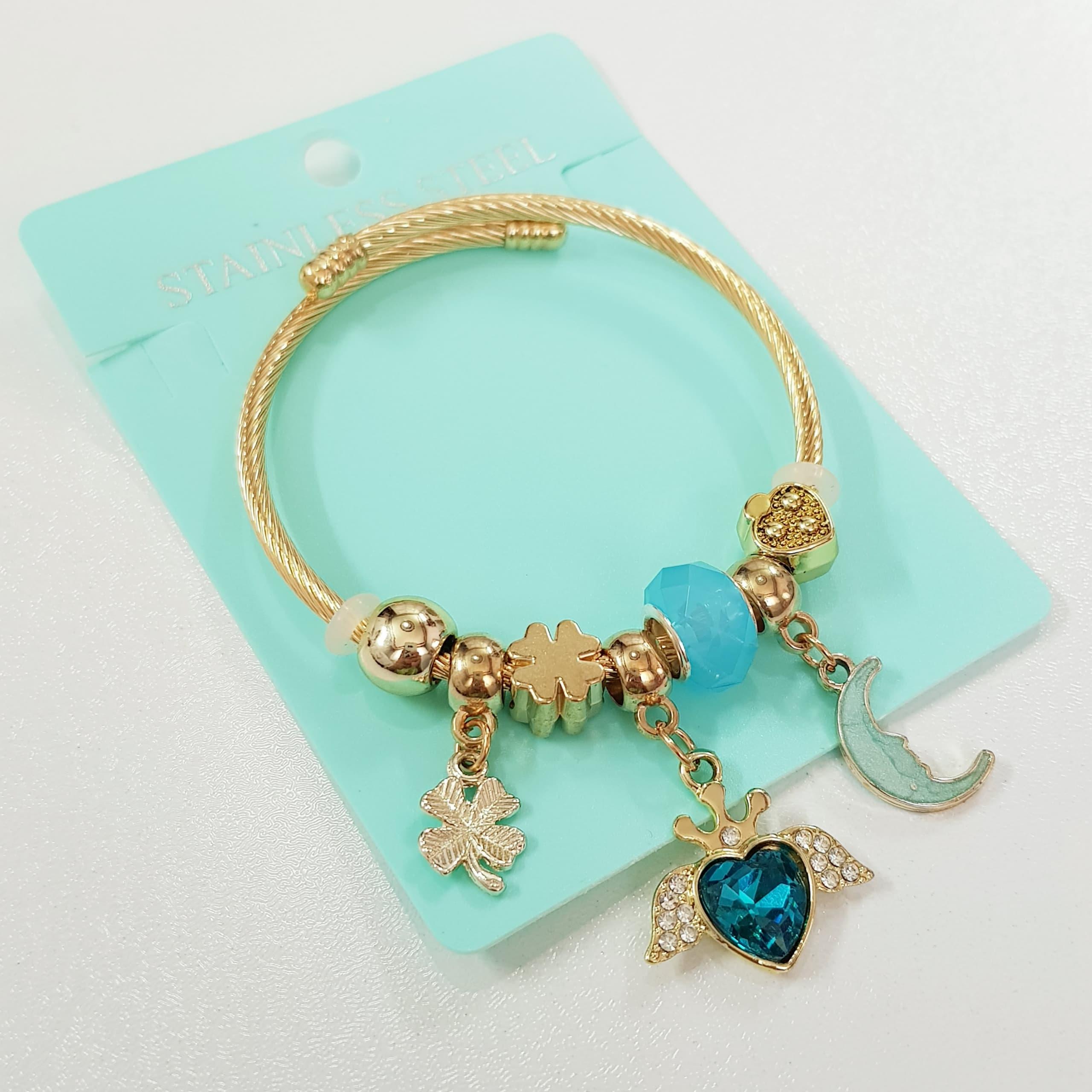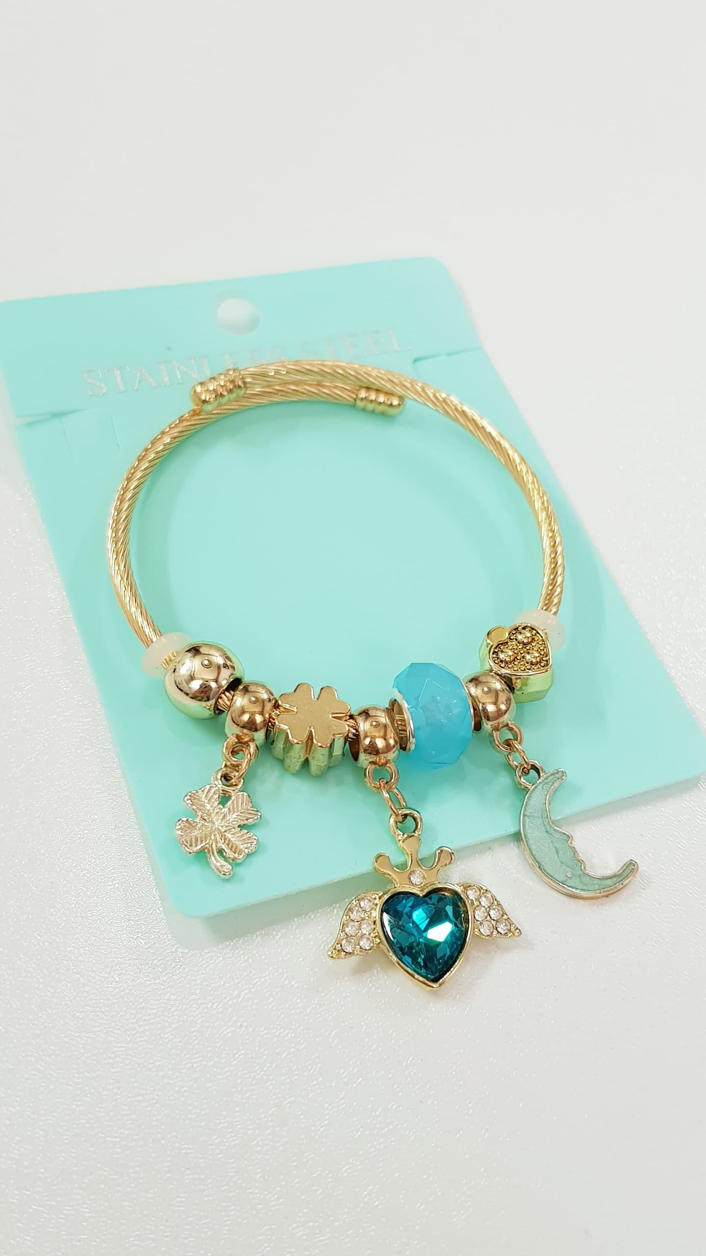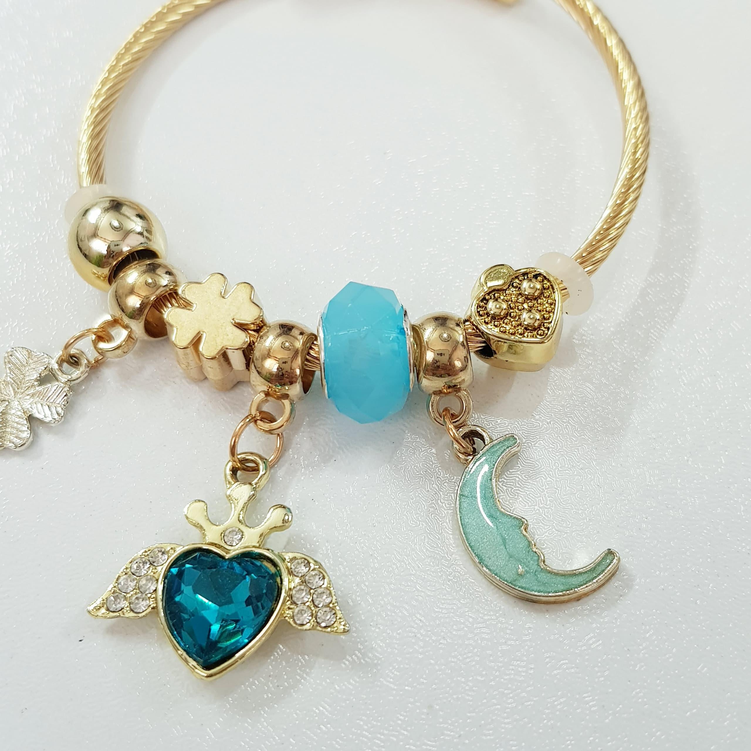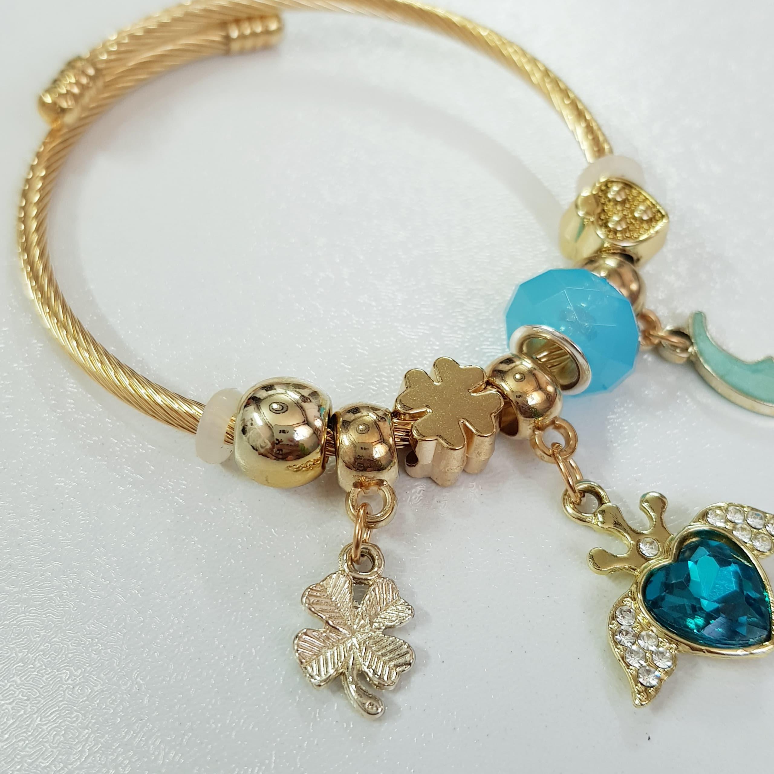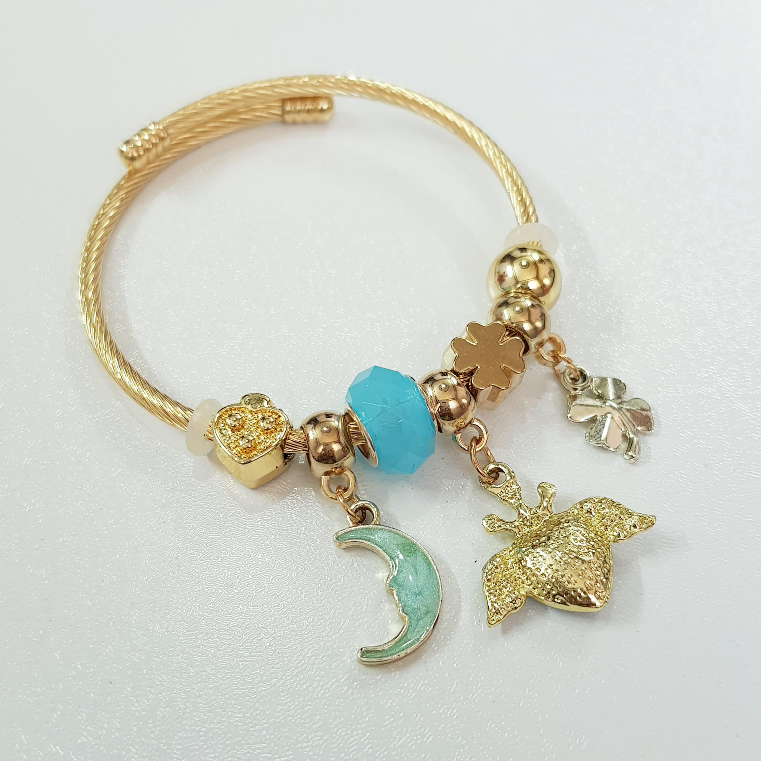 دستبند پاندورا طلایی استیل آویزدار ، فوق العاده ترند و خوشگل ، فری سایز کاملا ضد حساسیت ، فری سایز قابل تنظیم
