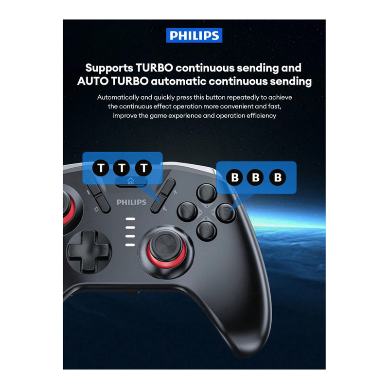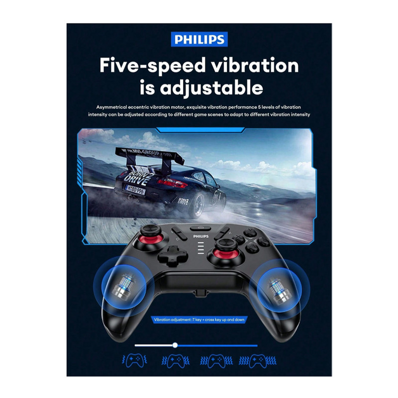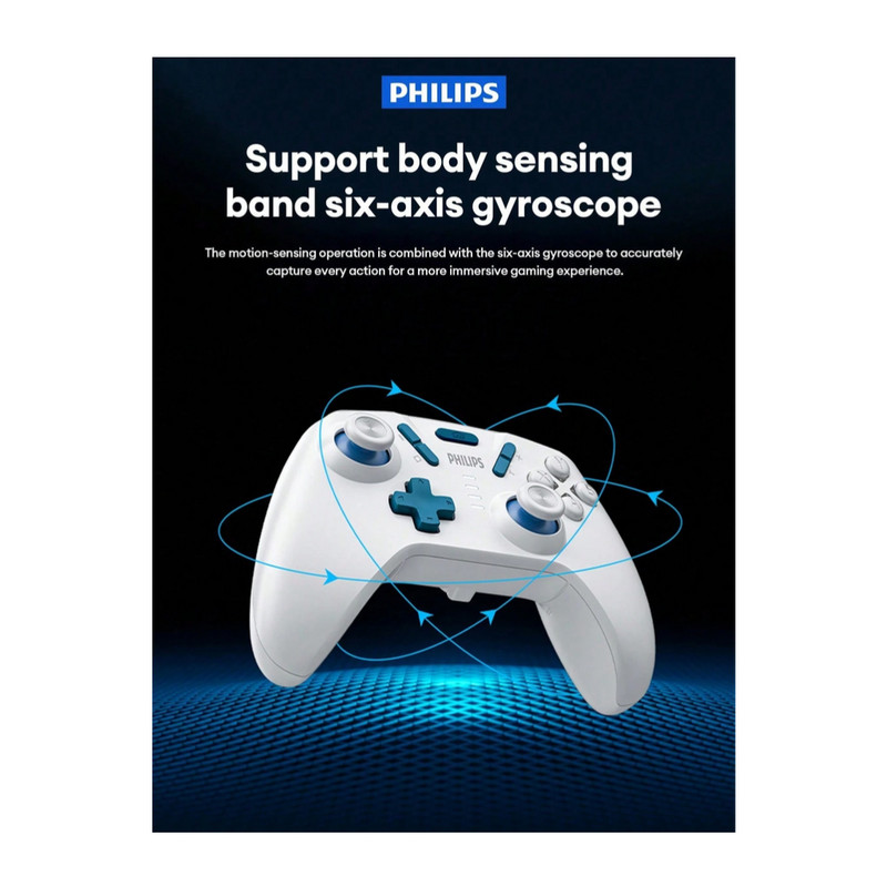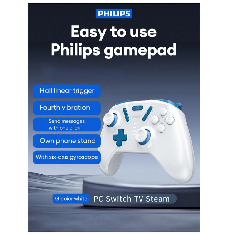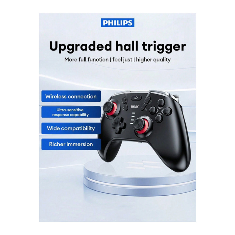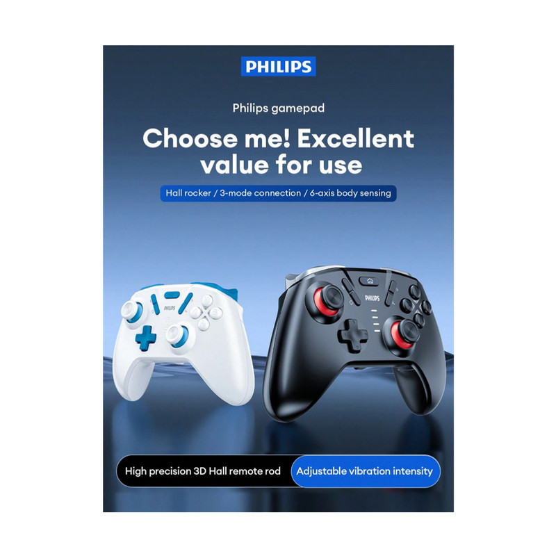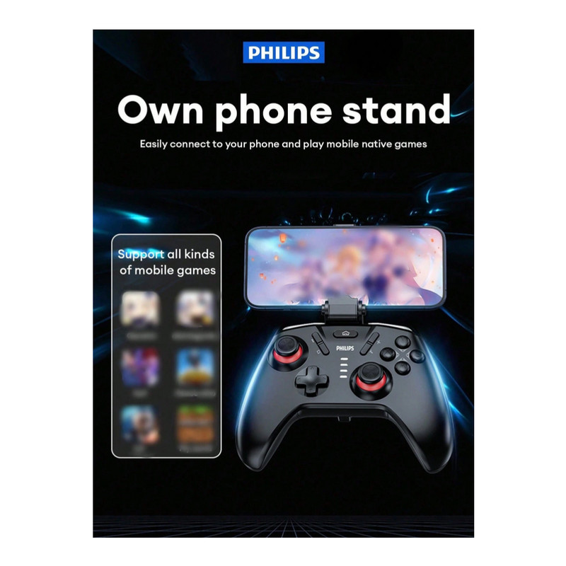 گیم پد وایرلس از برند فیلیپس. محصولی که جایگاه بسیار محبوبی در میان رقابای جهانی خود دارد. این گیم پد دارای باتری داخلی بوده و قابلیت اتصال به کامپیوتر را از طریق دانگل و اتصال به موبایل را از طریق بلوتوث دارد. کیبفیت ساخت بالا ، سنسور های بسیار دقیق به همراه جایروسکوپ 6 محوره ، قابلیت پردازش سریع و دقت بالا در انتقال اطلاعات ، قابلیت تنطیم ویبره شوک 5 حالته ، استند اتصال موبایل به دسته ، از دیگر قابلیت های این دسته بازی فوق العاده می باشد