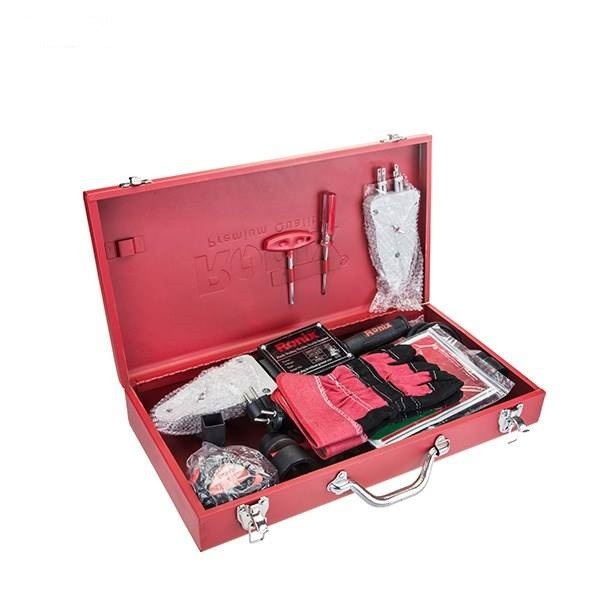 اقلام همراه -یک عدد راکت اضافه - دستکش کار - سیم سیار به طول 3 متر - متر 5 متری - قیچی پی وی سی بر بزرگ - آچار - کیف فلزی